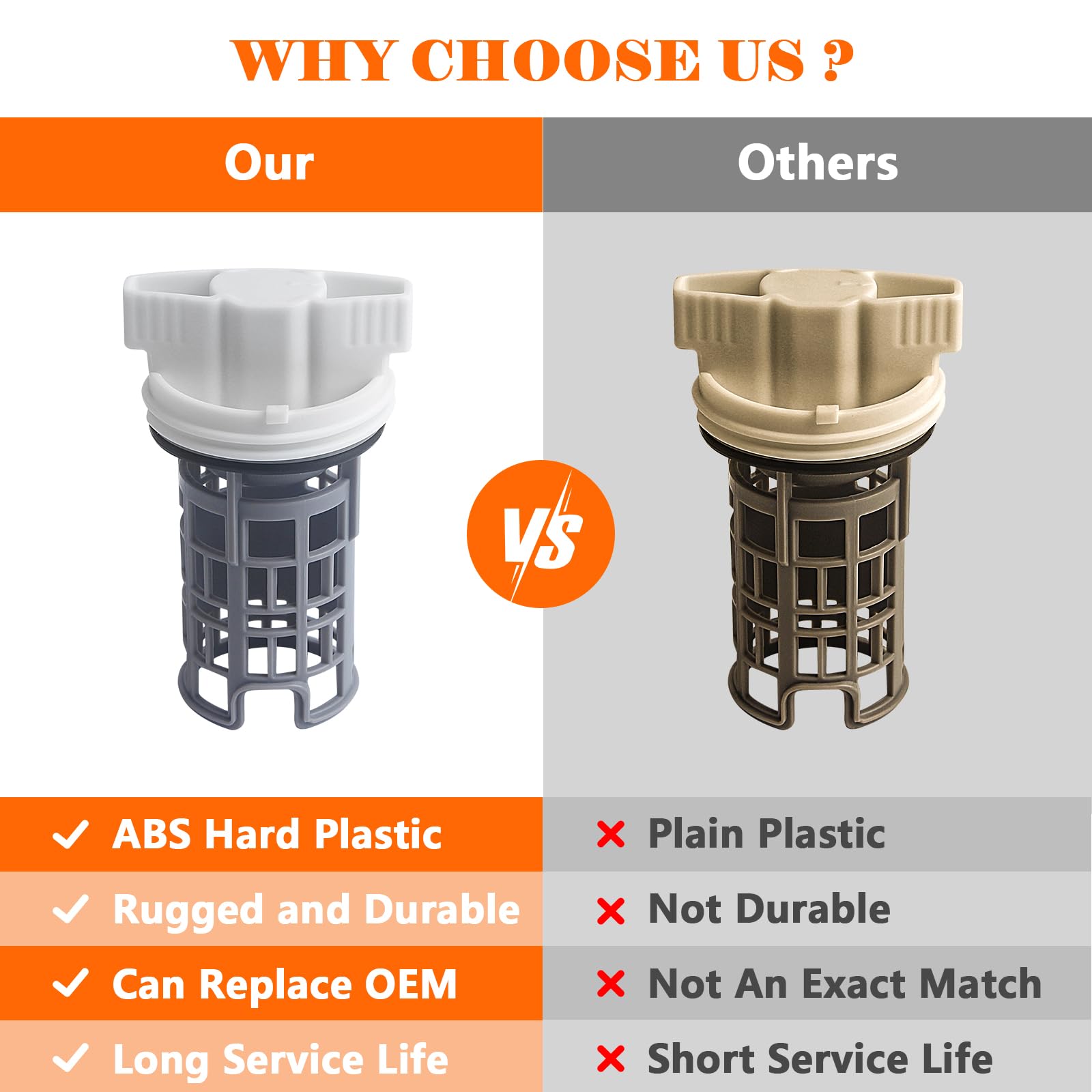 【ABS Hard Plastic】Washing machine drain pump filter is made of durable ABS hard plastic, rigorously factory-tested, OEM-compliant replacements for original equipment, and are resistant to deformation for long service life.
