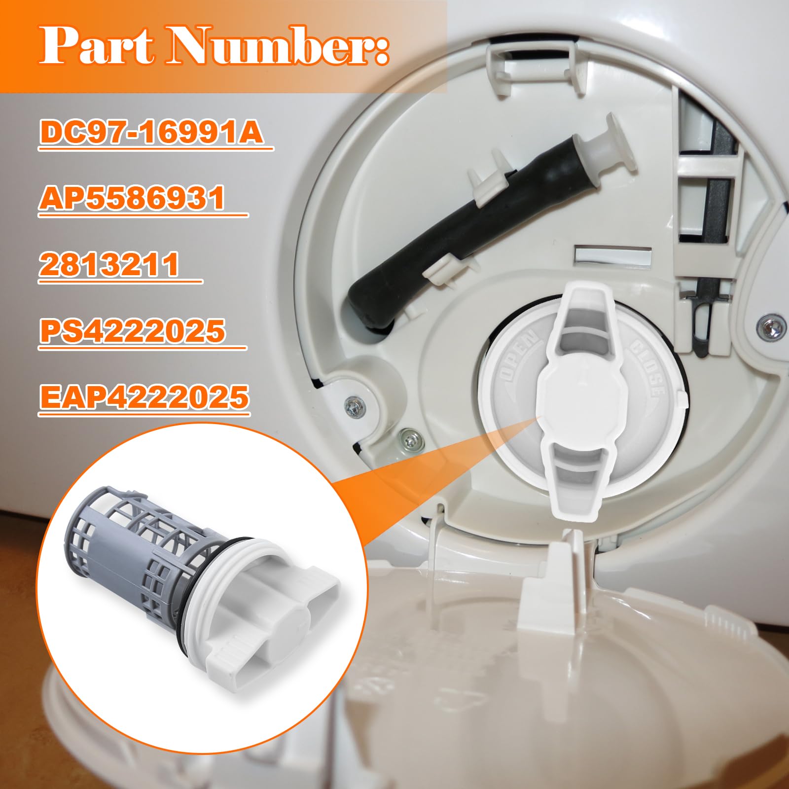 【Part Number】DC97-16991A washing machine filter replaces DC97-16991A, AP5586931, 2813211, PS4222025,EAP4222025.