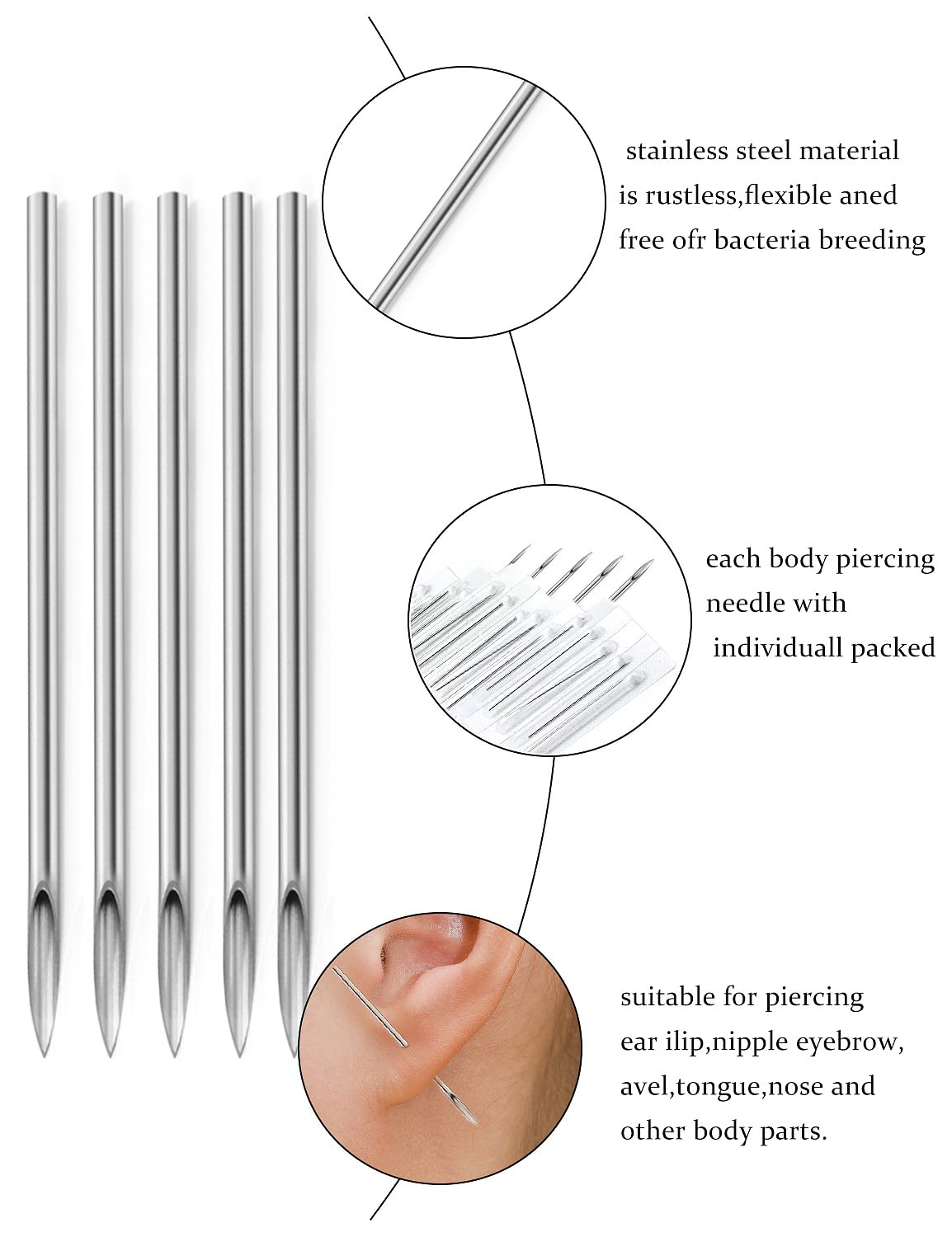 [SUITABLE FOR USE]: These Piercing Needles Can Be Used For Belly Button Rings, Tongue Rings, Septum Rings, Nose Rings Piercing, Lip Rings, Eyebrow Rings, Ear Piercing, Cartilage Tragus Helix Rook Conch Daith Earrings Piercing Jewelry