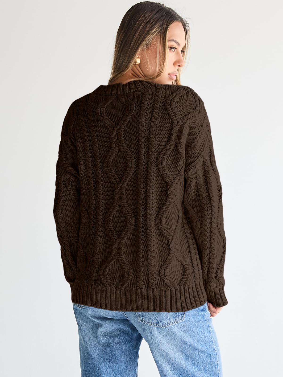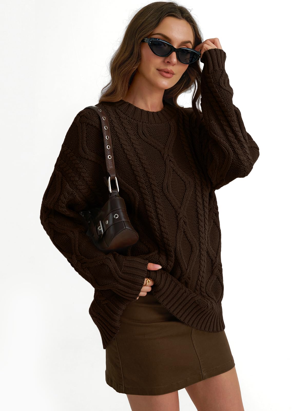 Cozy Fall Essential -Featuring a chic oversized fit and timeless cable knit pattern, this sweater is your ultimate layering piece. Wear it alone with leggings for a crisp fall day, or layer it over a collared shirt when the temperature drops—its relaxed cut allows for easy styling without bulk.