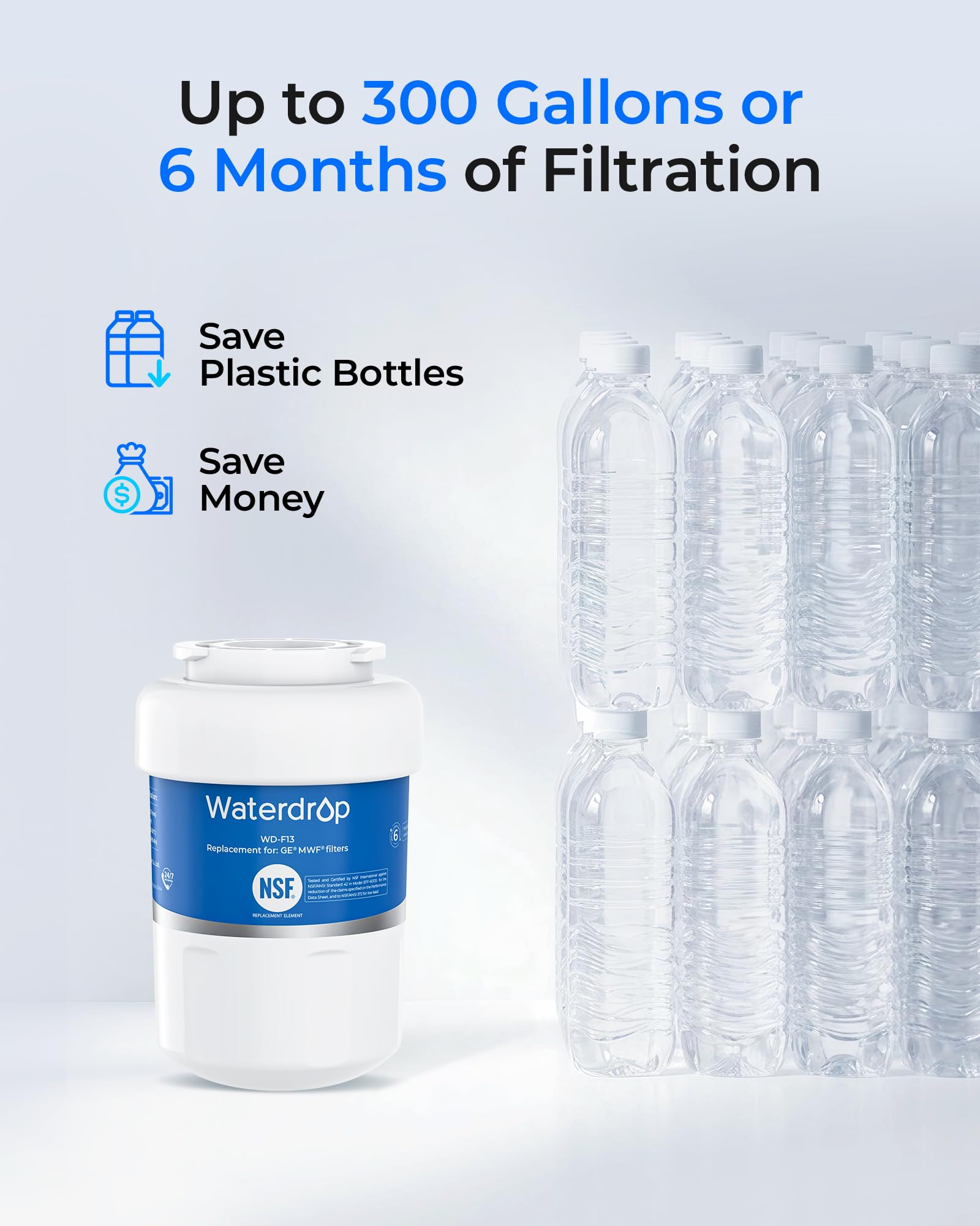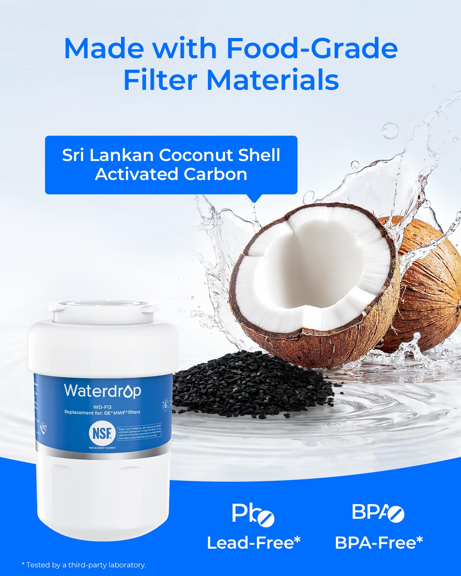 [BPA-free and food-grade materials] At Waterdrop, we prioritize your safety. This is why we have used only safe materials in this refrigerator filter, as verified by the NSF 372 certification for lead-free materials.