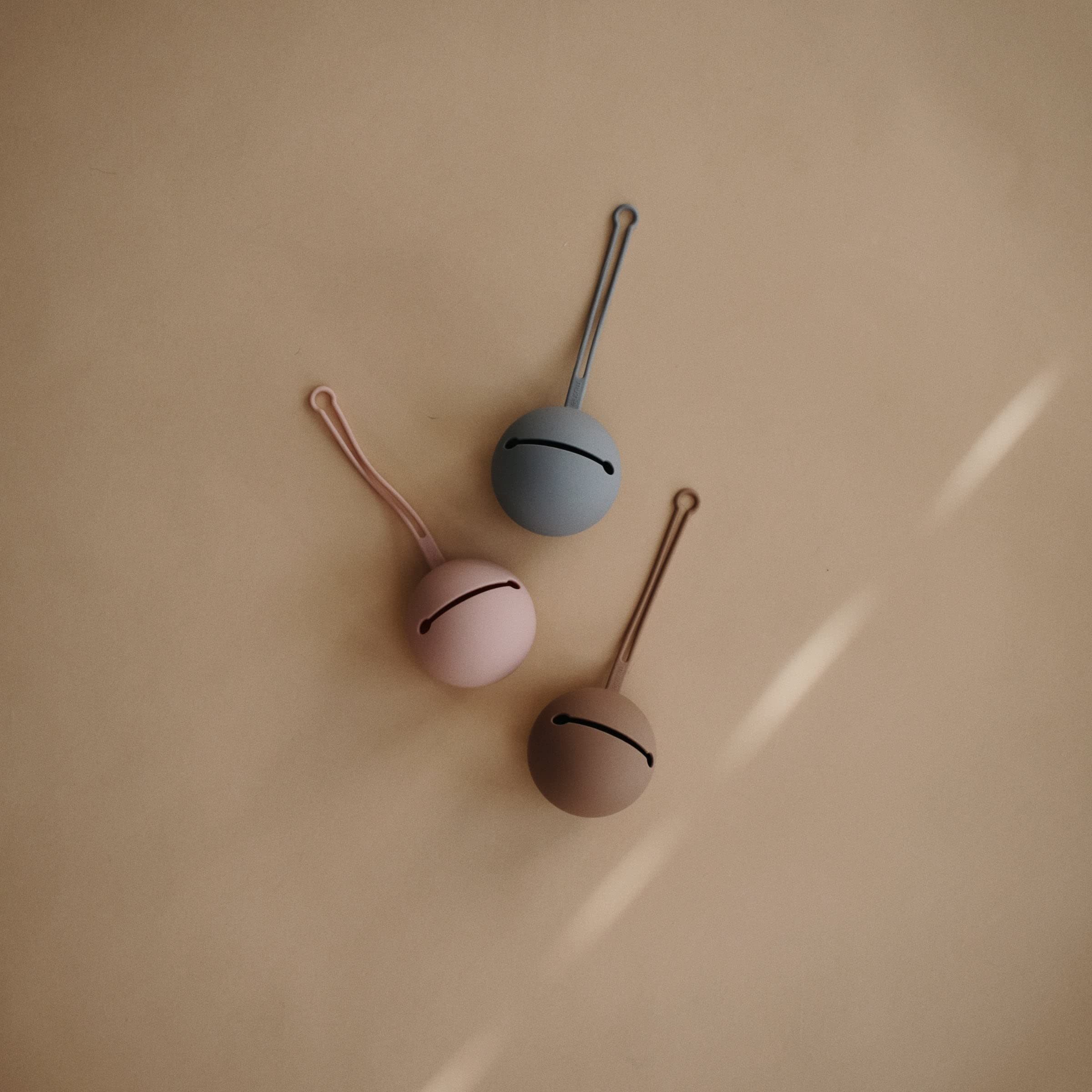 The Mushie silicone pacifier holder keeps your baby's pacifiers clean and ready to use. Made from a soft silicone with a convenient strap, this pacifier case is easy to attach to a stroller or diaper bag.