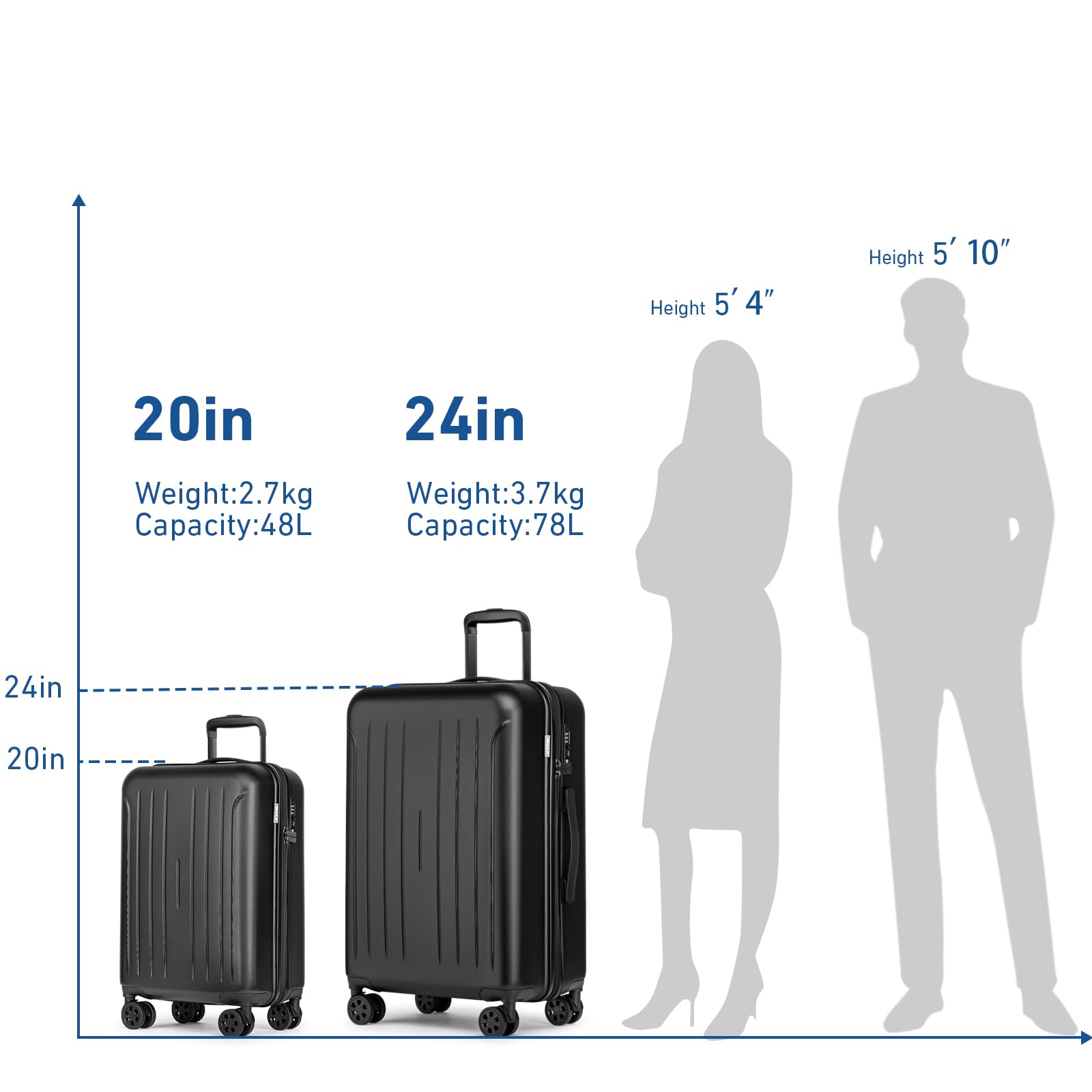Overall Dimensions:16.7"x10.6"x26.7".KYME lightweight 24" suitcase maximizes your packing power and is the ideal checked bag for longer trips. Perfect for 5-7 days trips!