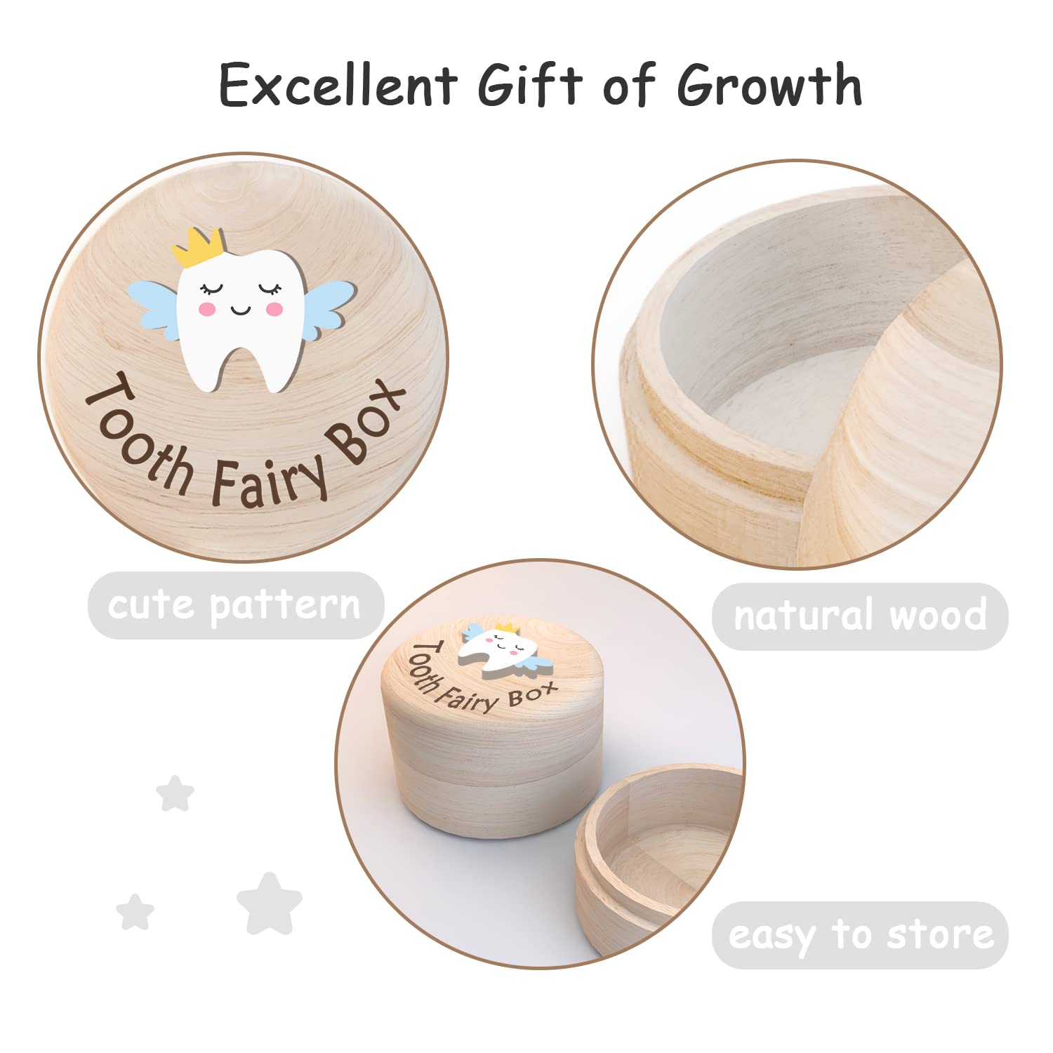 🦷Cherished Keepsake🦷 The Tooth Fairy Wooden Box is a great baby tooth keepsake, because every baby tooth is precious to a child, with the Tooth Fairy Wooden Box you can not only keep your baby's teeth as a keepsake, but also protect the precious teeth, and witness your baby's growth with the Tooth Fairy.