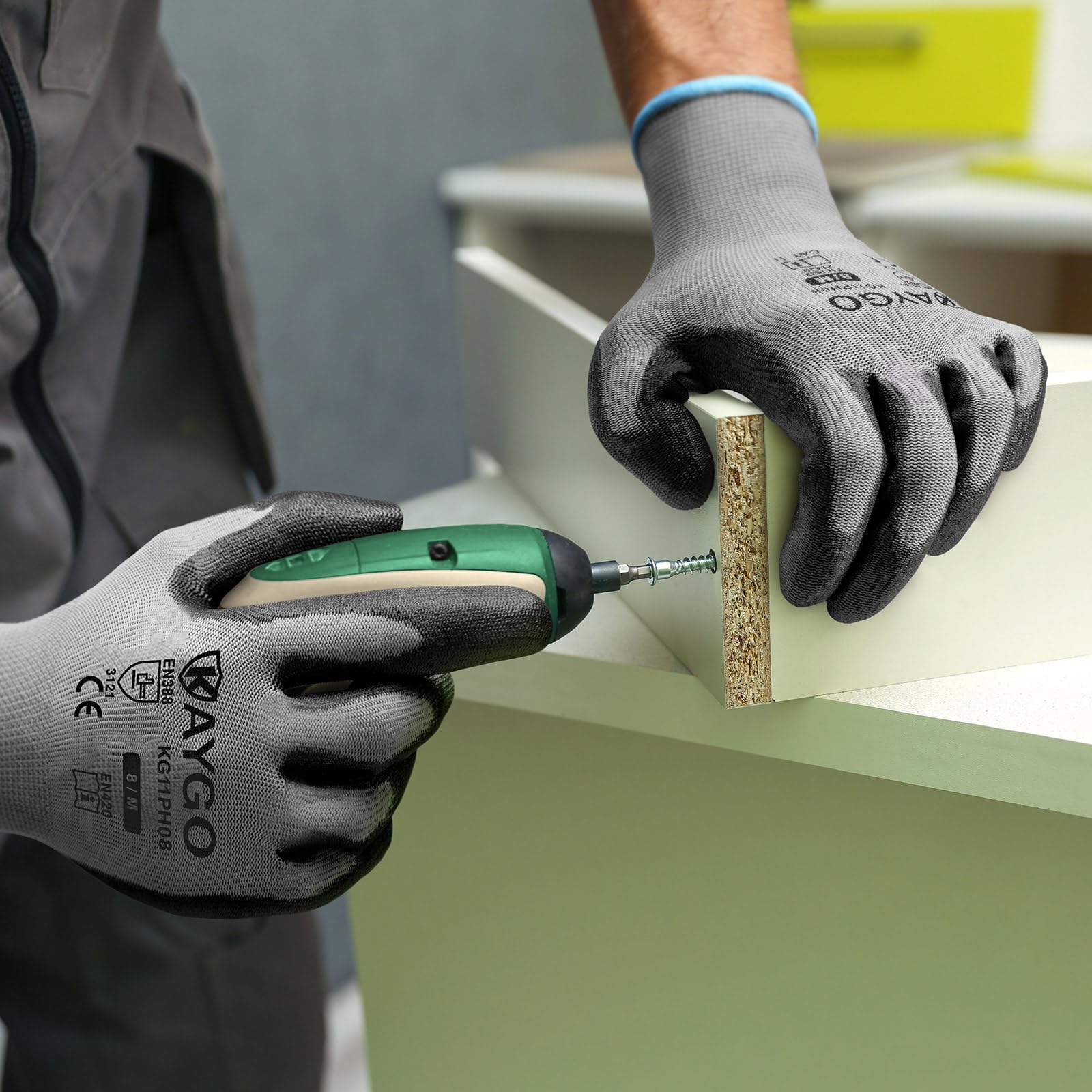 Reliable Abrasion Protection:Certified to CE EN388:2016 (3121) abrasion level 3, our gloves offer dependable resistance against wear and tear from cardboard, wood, tools, and rough surfaces. Ideal for light‑to‑medium duty tasks where dexterity and protection both matter