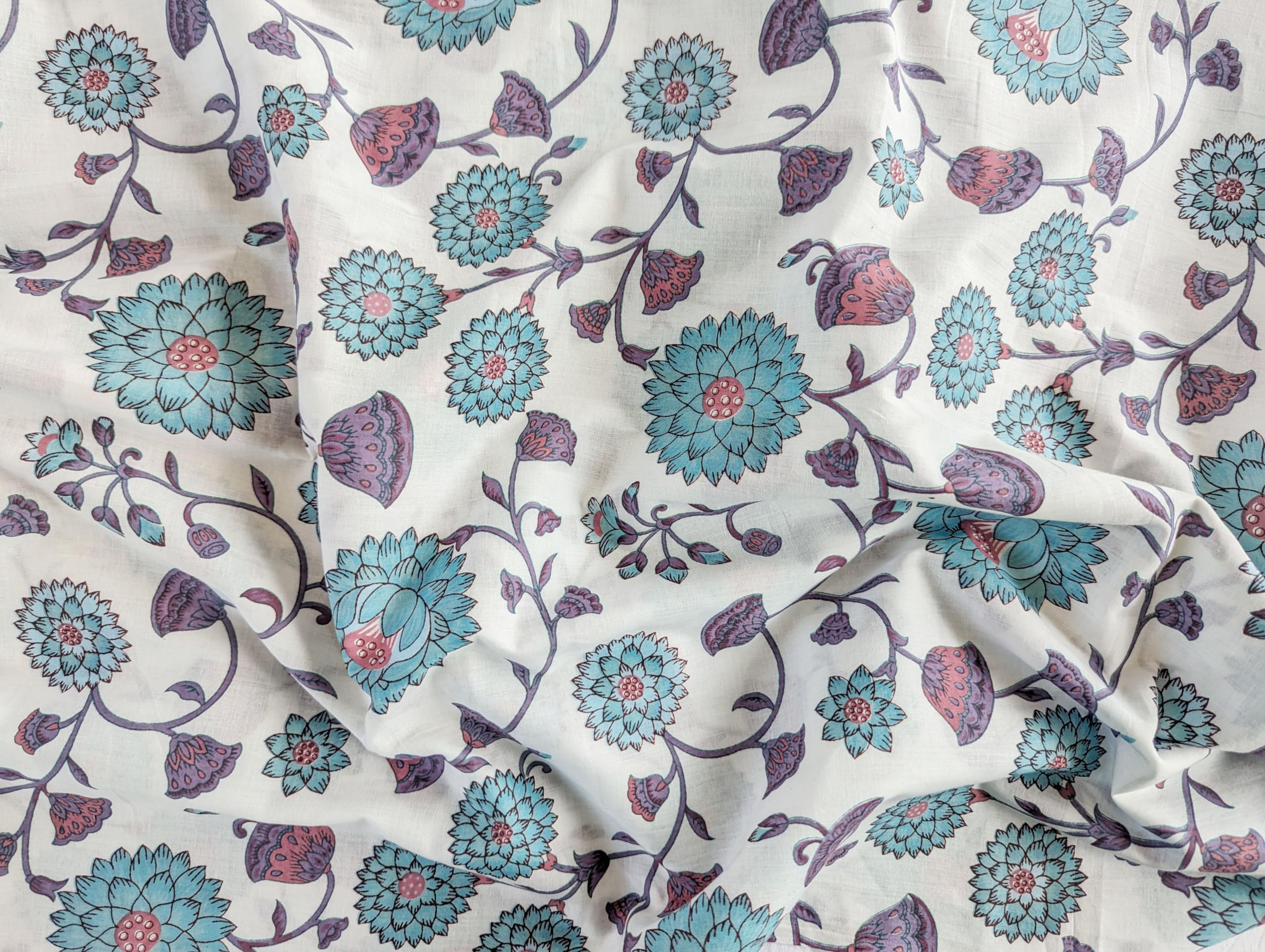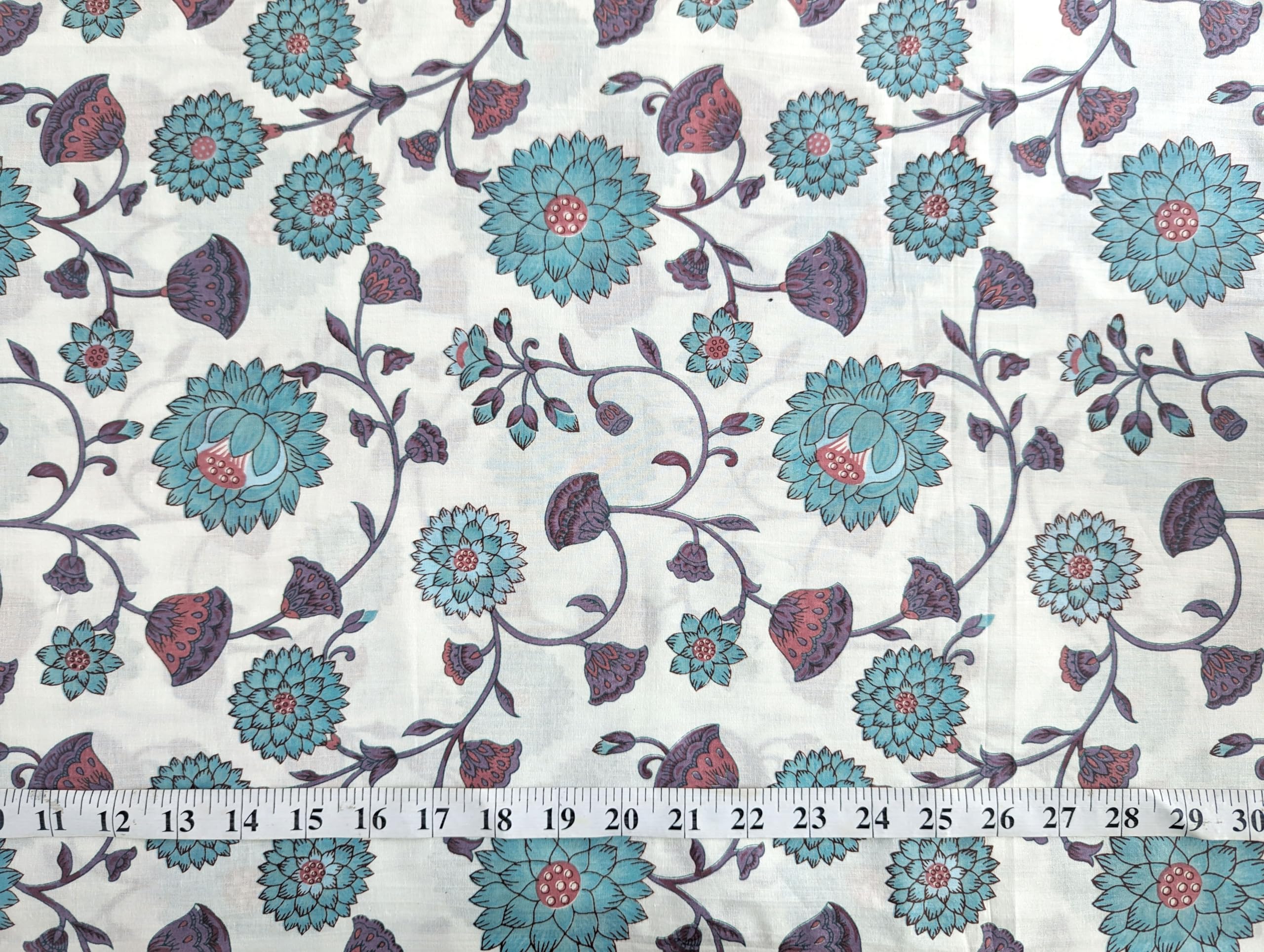 This is a precut piece of 3 yards of an Indian cotton fabric. This is a hand printed fabric using wooden blocks or screens. The width of the fabric is 42 inches. It is a pure cotton yardage and is a thin light weight cotton. Ideal for garments and light home linen. Use this unique and beautiful printed cotton for your next sewing project. If you order 2 quantity, you will receive 2 pieces of cut fabrics of 3 yards each. You will not receive a continuous yardage.
