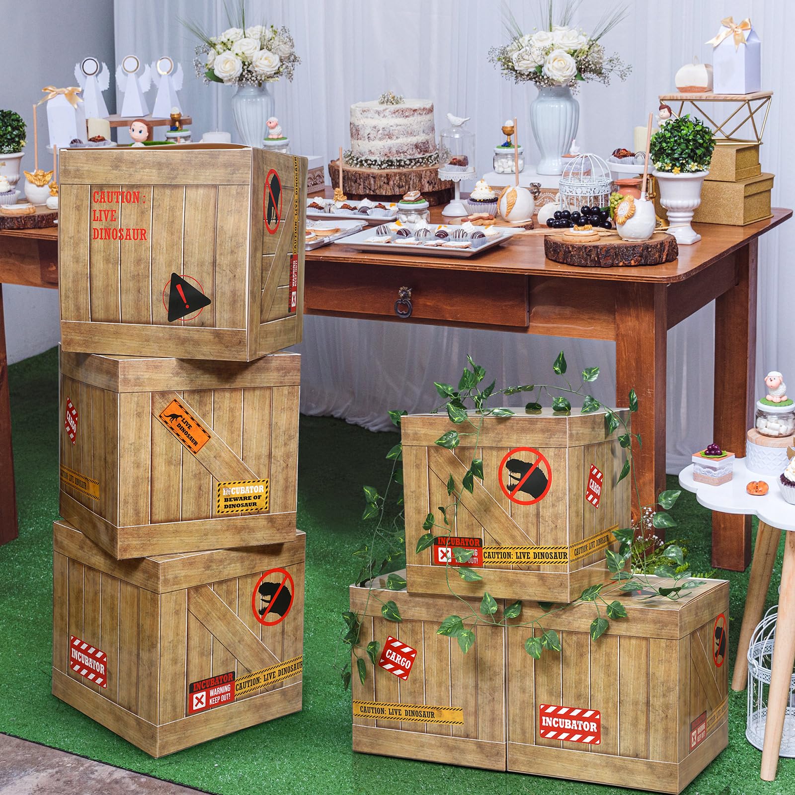 Generous Sizing: our dinosaur boxes are proportionally sized at 11.81 x 11.81 x 11.81 inches, big enough to draw your guests' attention; An ideal dinosaur party decoration that paves the way for boundless imagination and engaging interaction among dinosaur enthusiasts