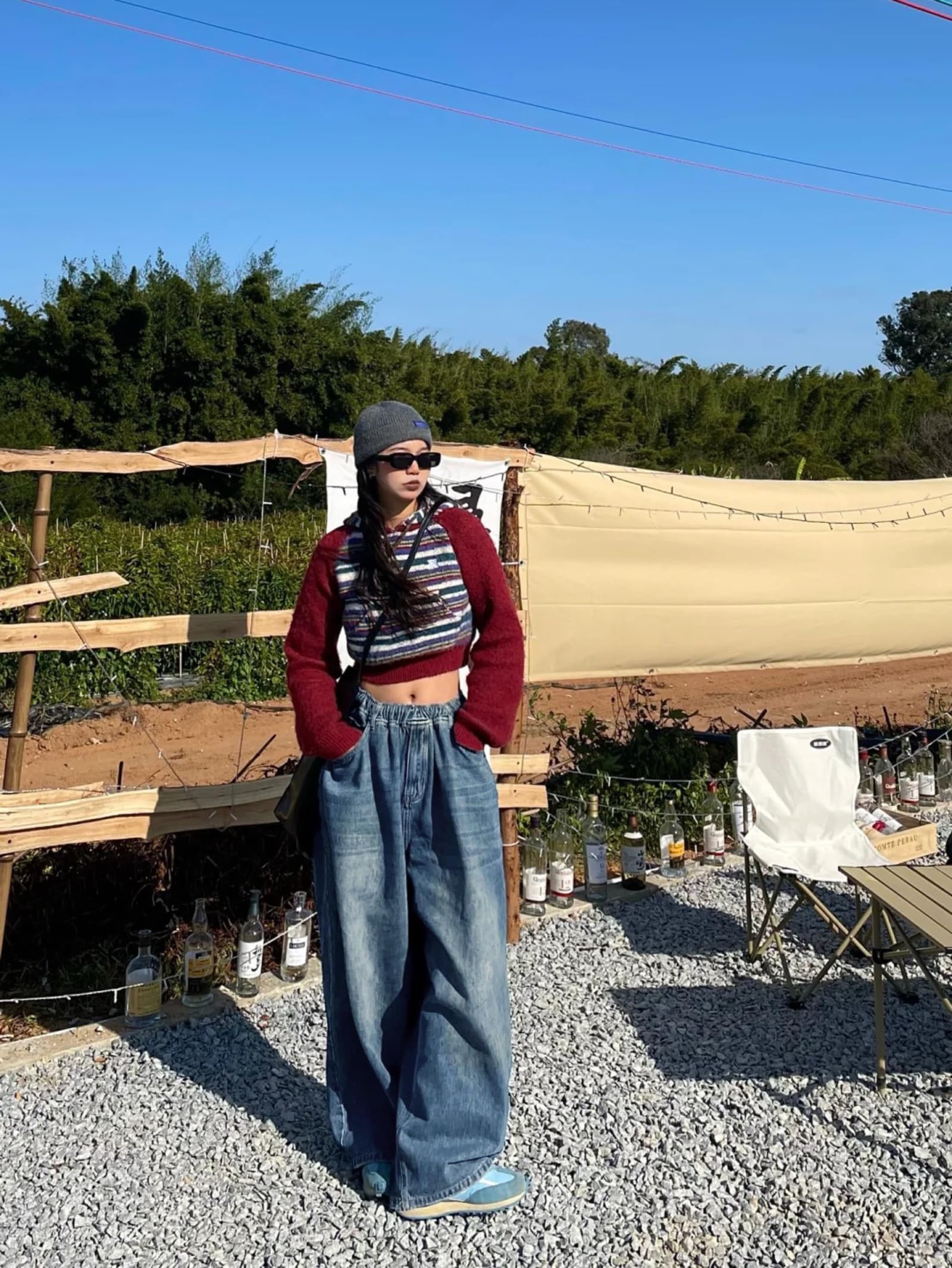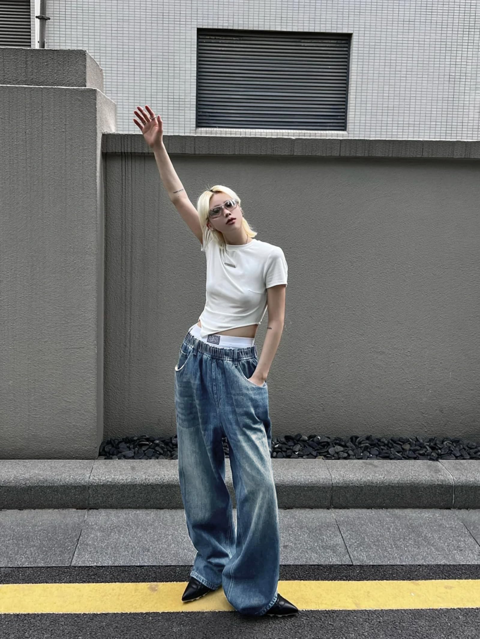 Y2K BAGGY WIDE LEG: Embrace the Y2K vibe with these vintage baggy jeans, featuring intentional distressing on pockets. Includes zip fly, button closure, and adjustable belt loops for a customizable oversized silhouette. The wide leg cut adds a chic street touch to your look.
