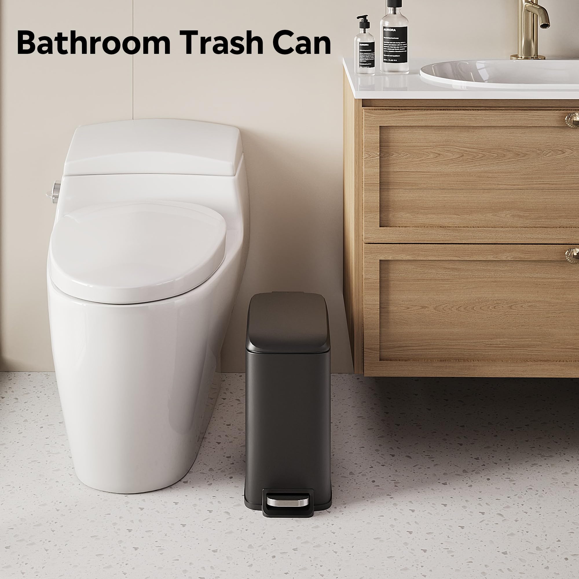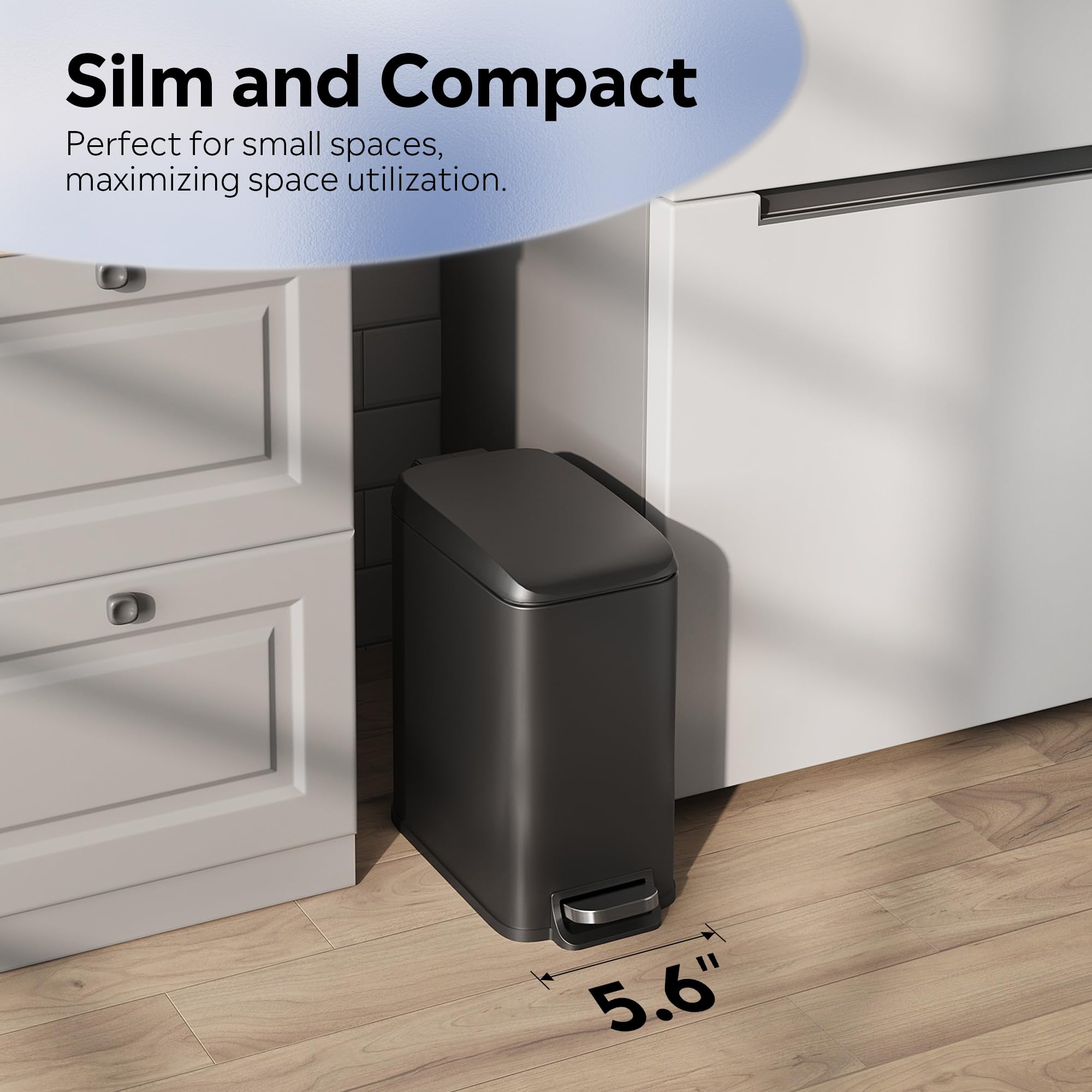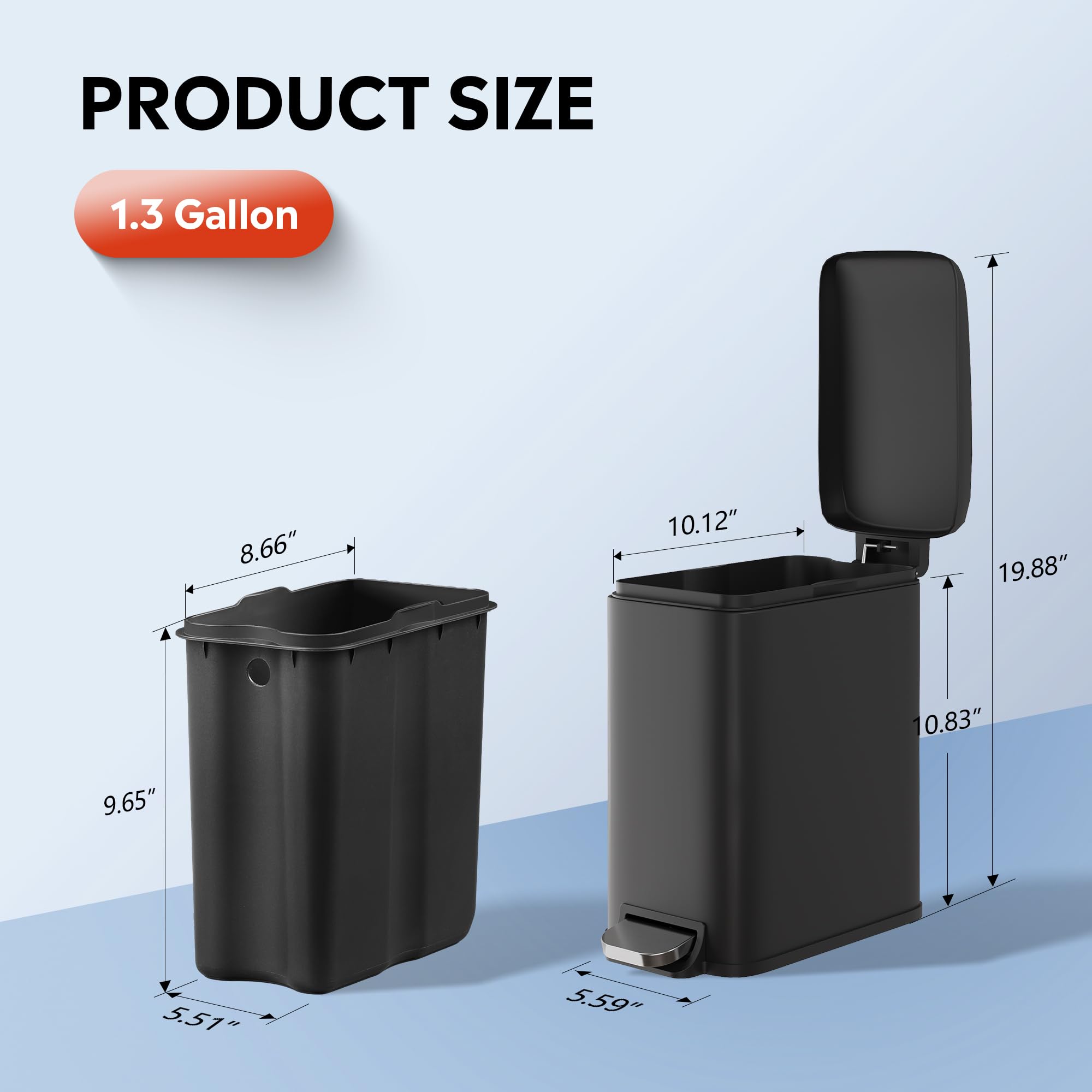【Perfect Small Trash Can with Lid】Our 5L bathroom trash can features a slim, space-saving design that fits snugly in corners. Ideal as a compact bathroom or office garbage can, it maximizes functionality without cluttering your space.