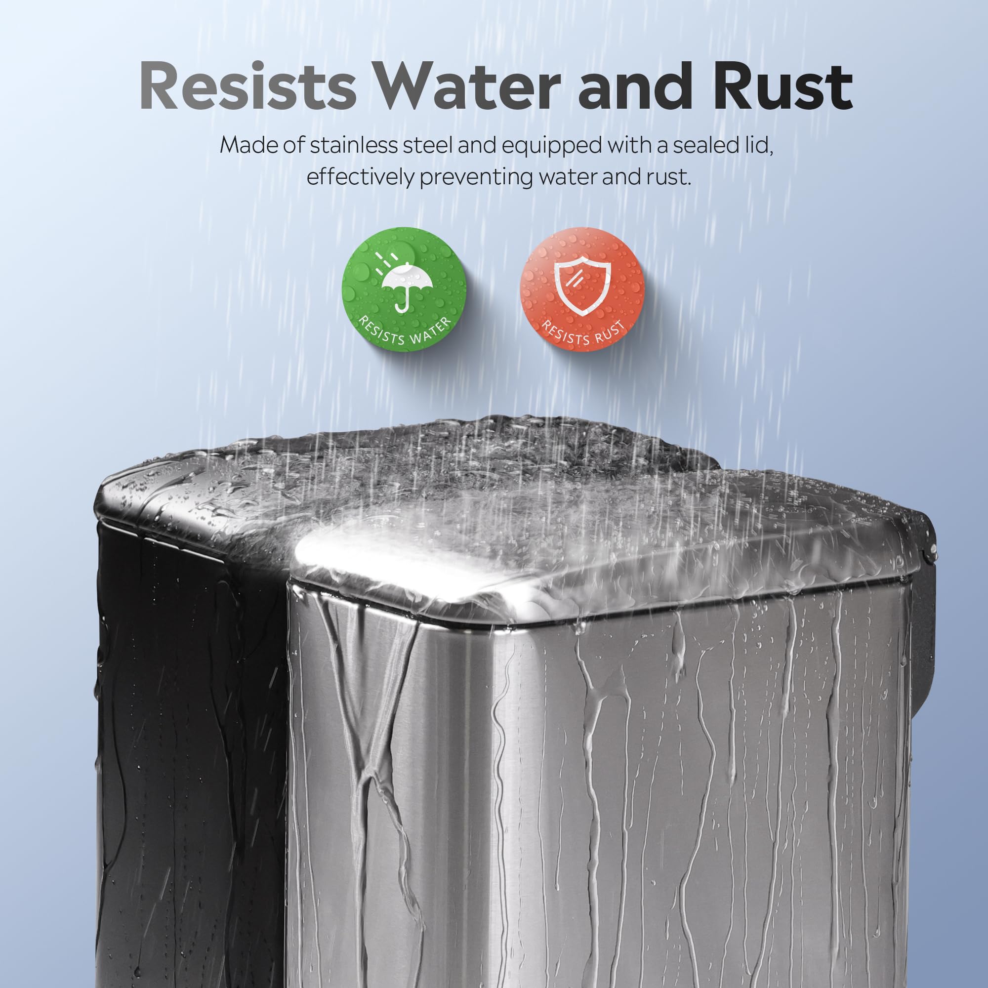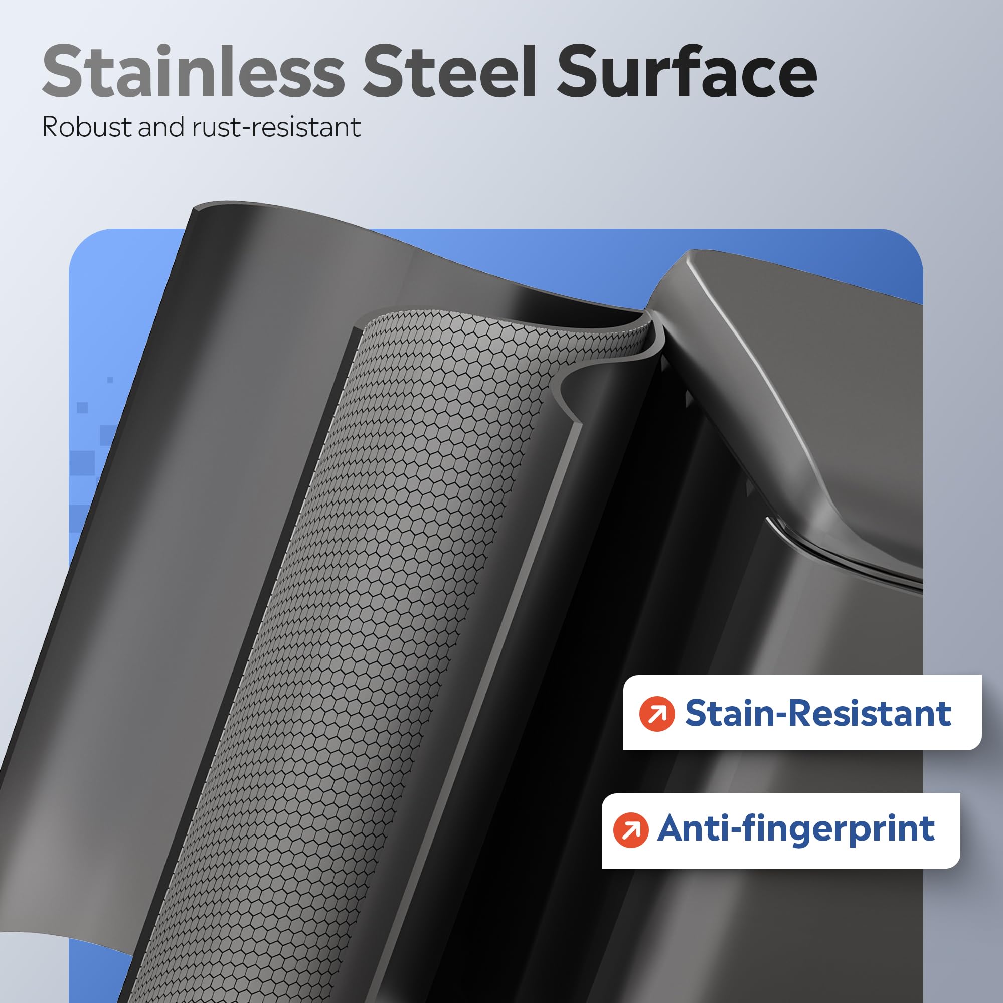 【Easy-Clean Stainless Steel Trash Can】Crafted from fingerprint-resistant stainless steel, this bathroom garbage can maintains a sleek, spotless look with minimal effort. Its durable surface wipes clean quickly, ensuring lasting style.