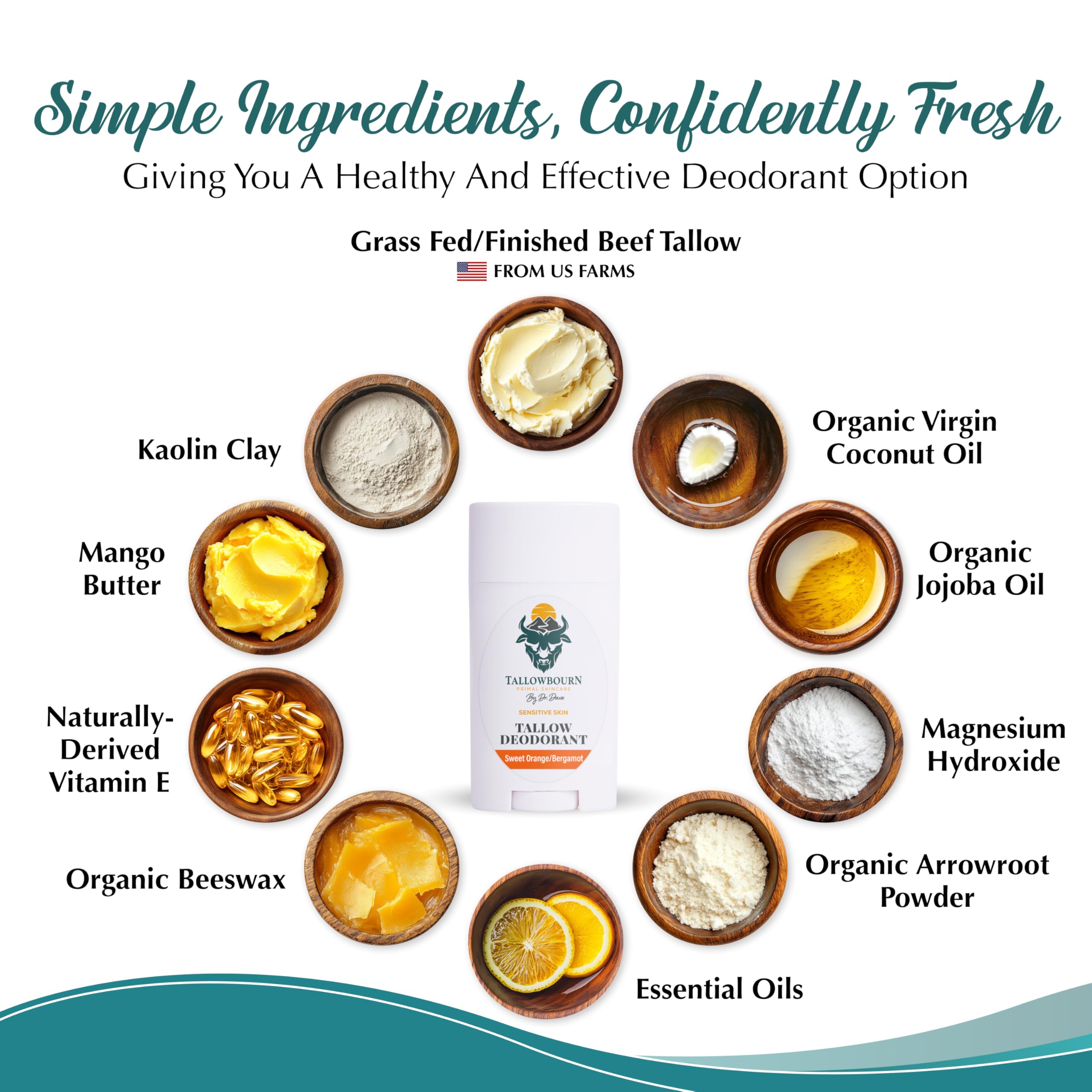 TALLOW-BASED NOURISHMENT: Rich in vitamins A, D, E, and K, our high-quality suet tallow deodorant conditions skin; matches the skin's moisture profile for a seamless, effortless application without a waxy or sticky buildup.