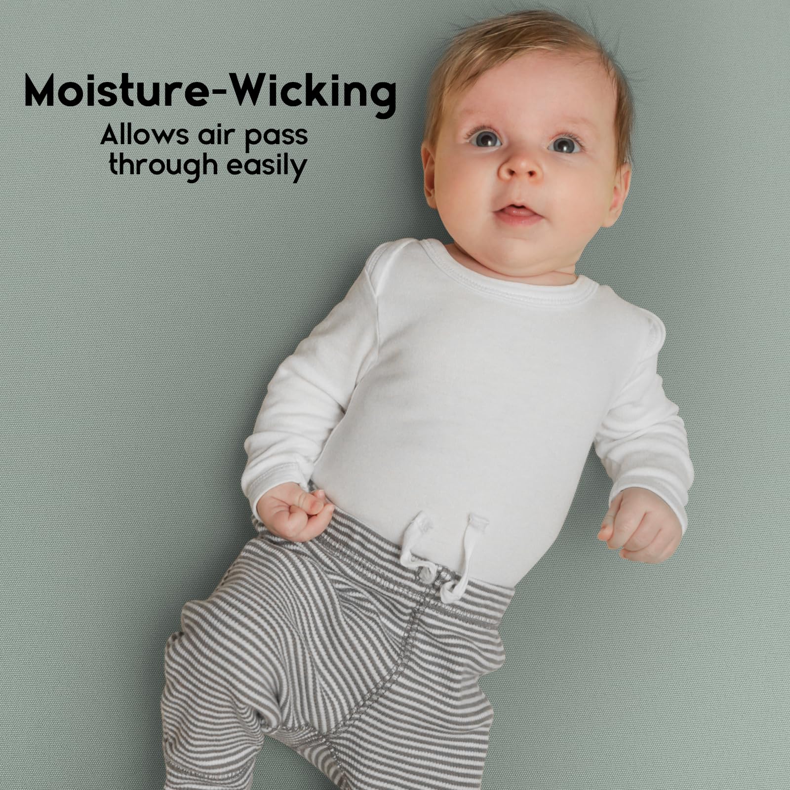 COZY AND BREATHABLE: Made from 95% microfiber & 5% spandex, our pack and play sheets are gentle and safe to touch, does not irritate baby's delicate skin. The breathable fabric also allows air to pass through easily and brings your baby a peaceful dream.