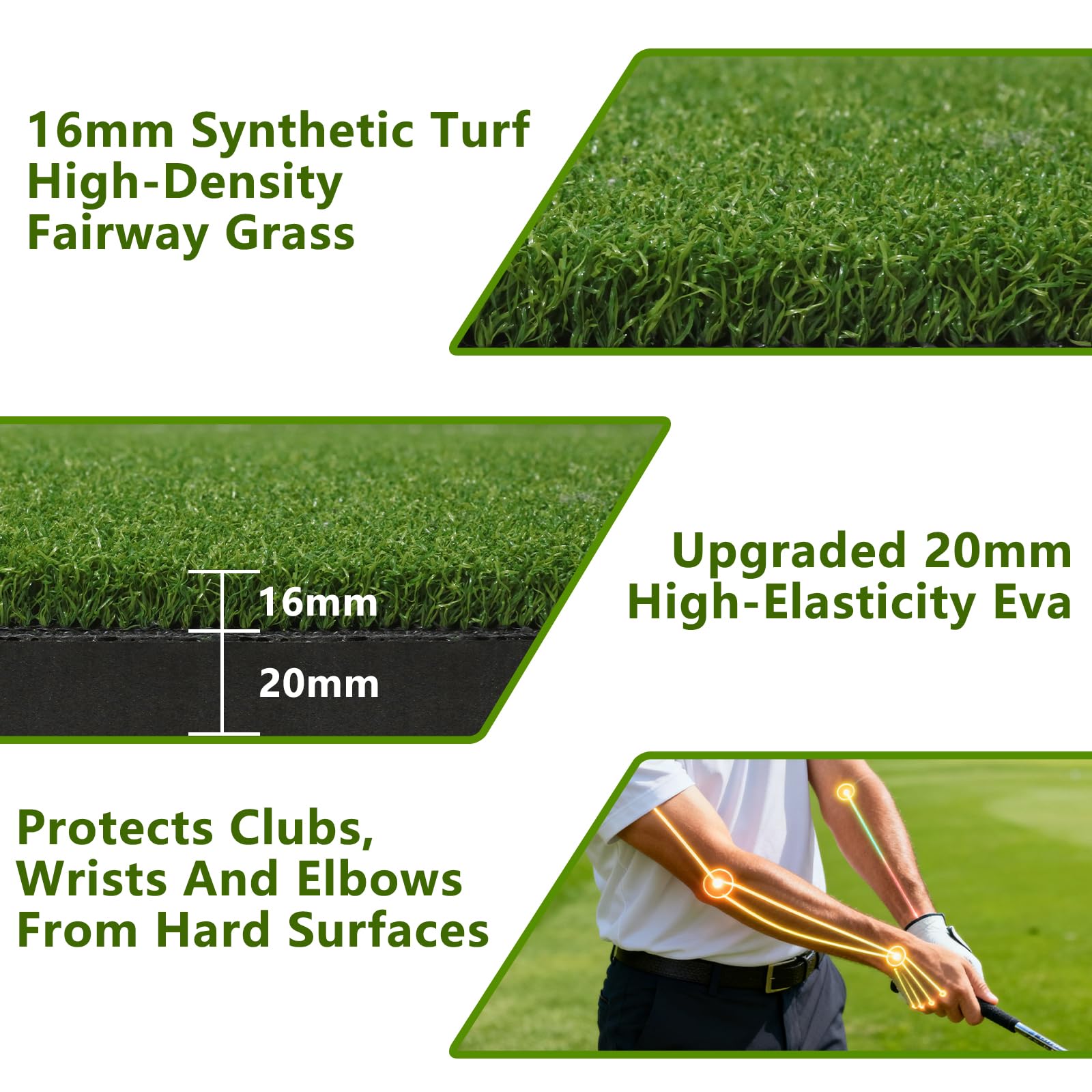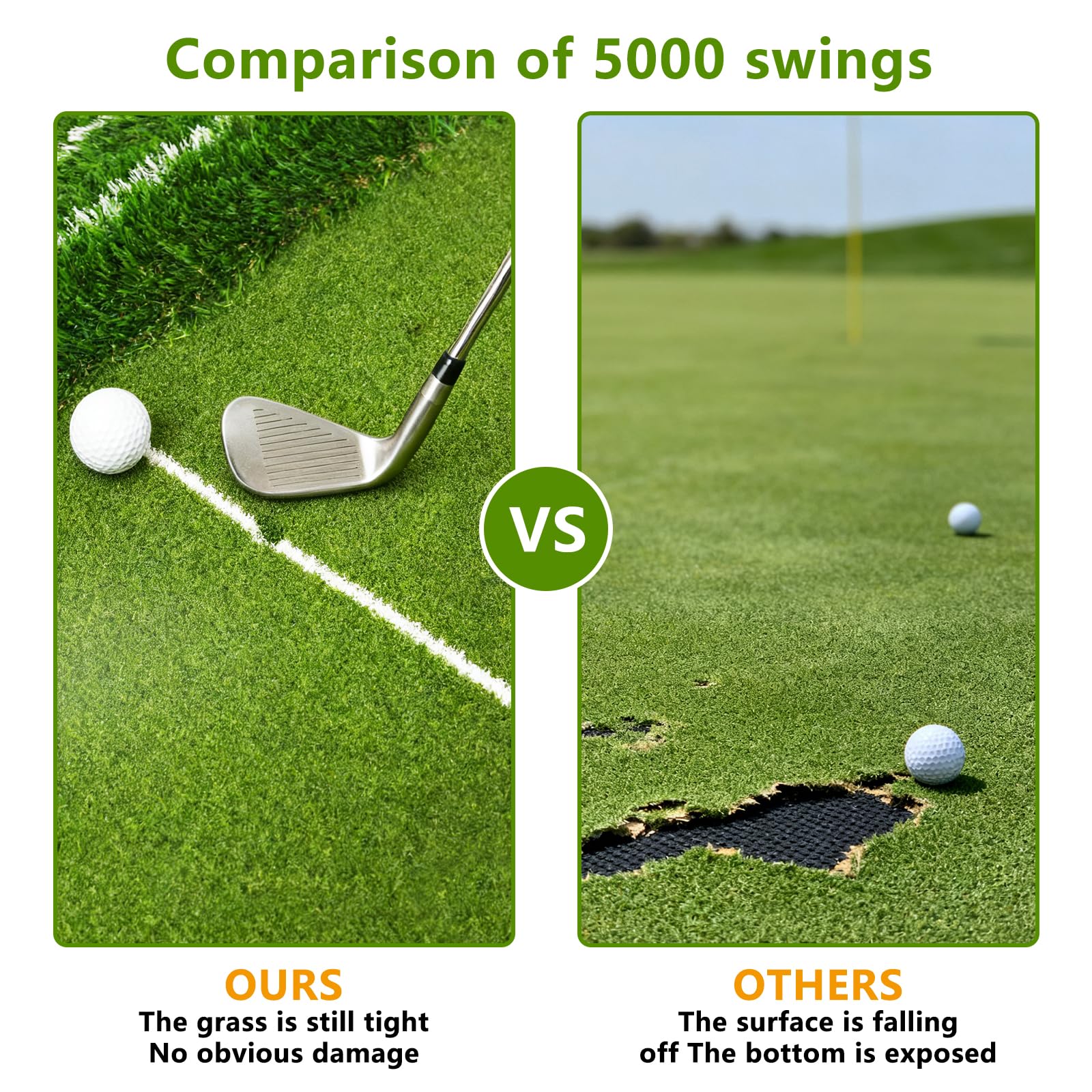 Built for Commercial-grade Durability: Engineered with anti-tearing layer and reinforced edges, this golf mat withstands the impact of repeated golf shots without showing signs of wear and tear. The dense artificial grass resists flattening, fraying, and weather damage – ideal for year-round golf practice mat use
