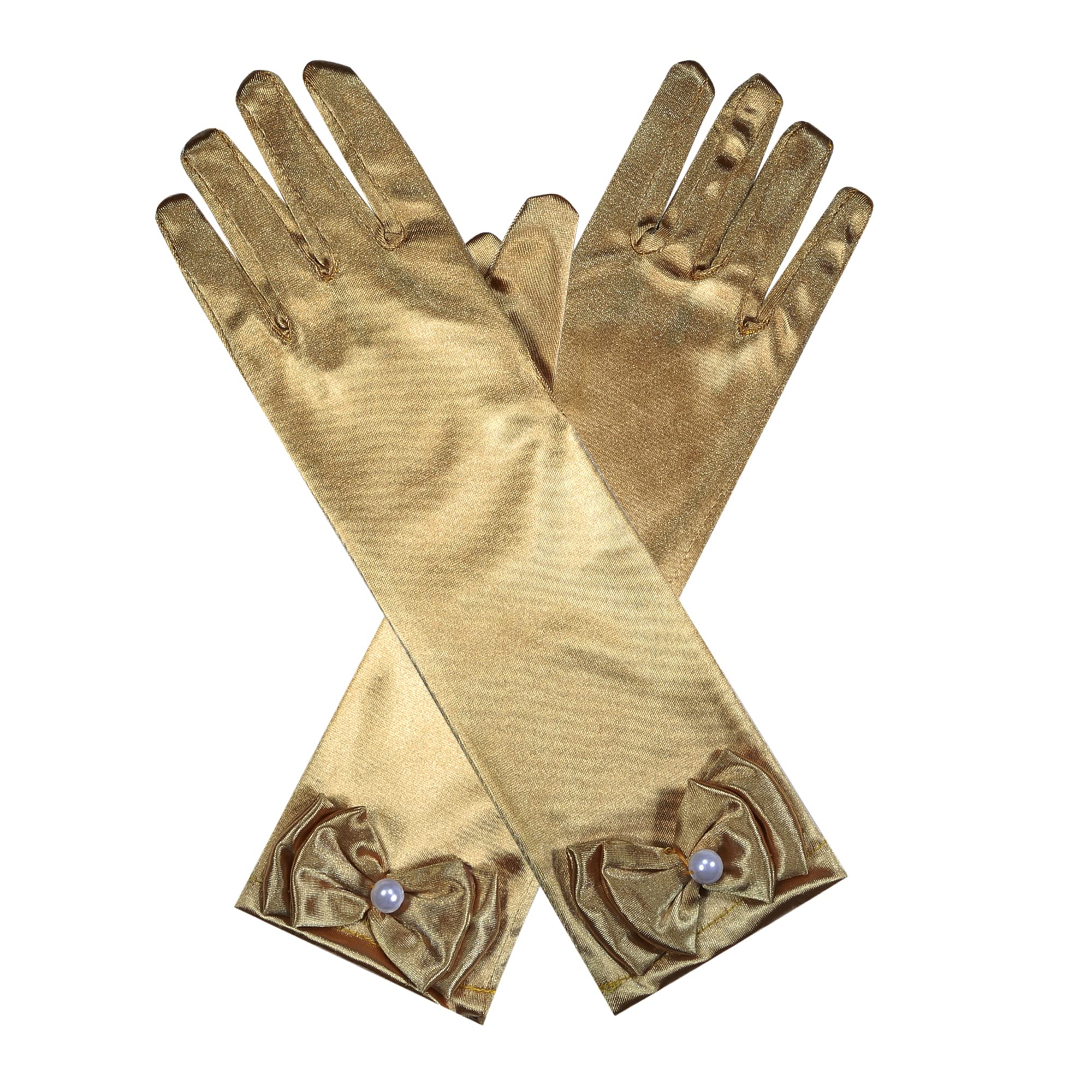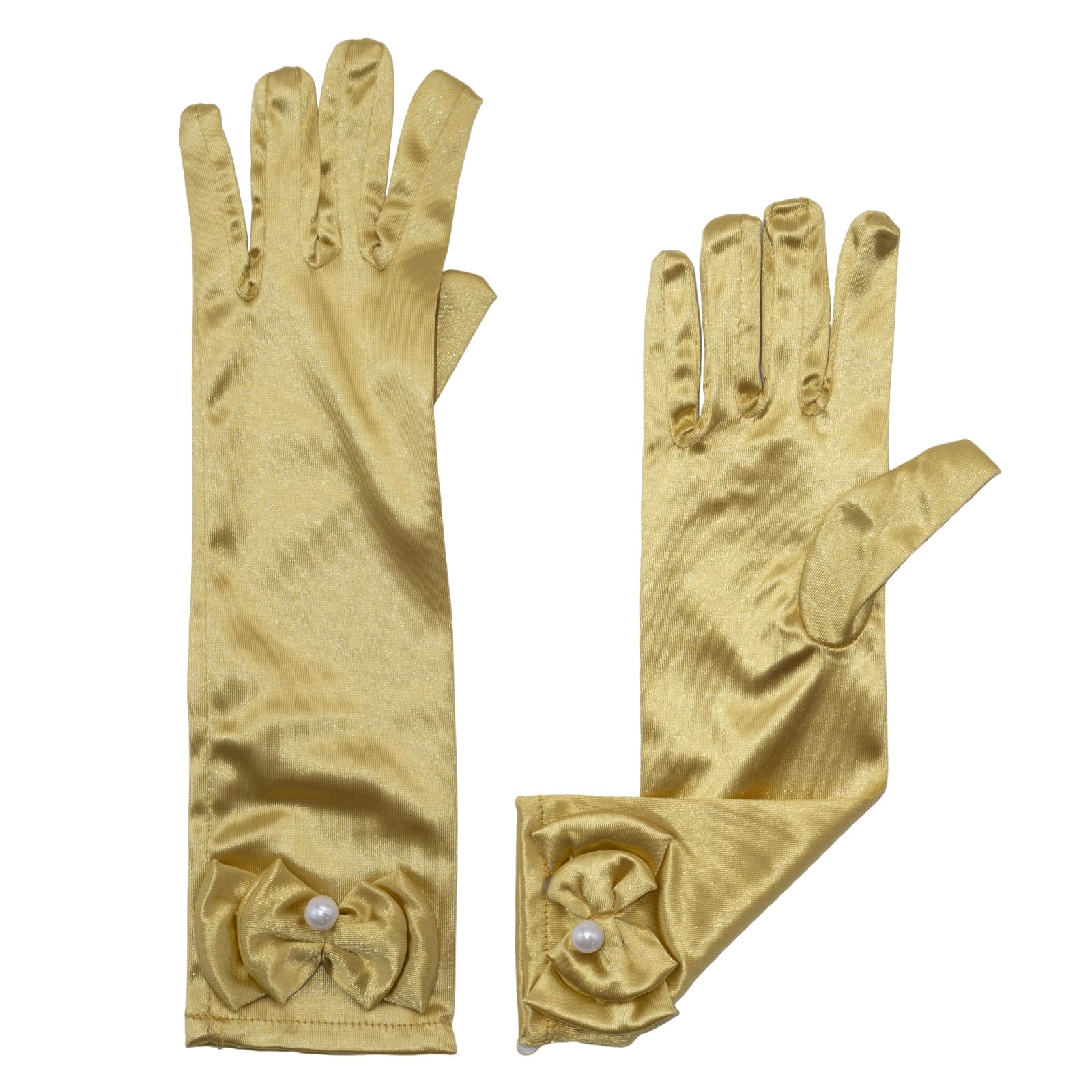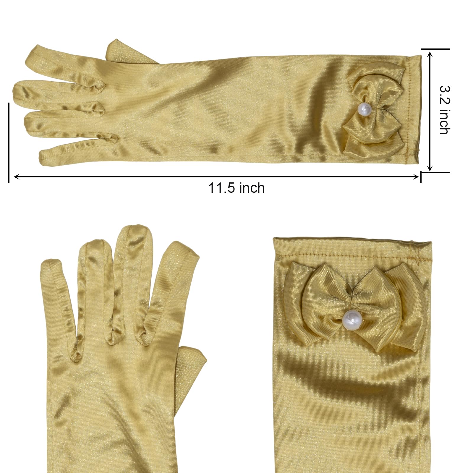 Material : Our girls dress up gloves with slightly stretchy satin fabric,soft to touch,comfortable to wear.
