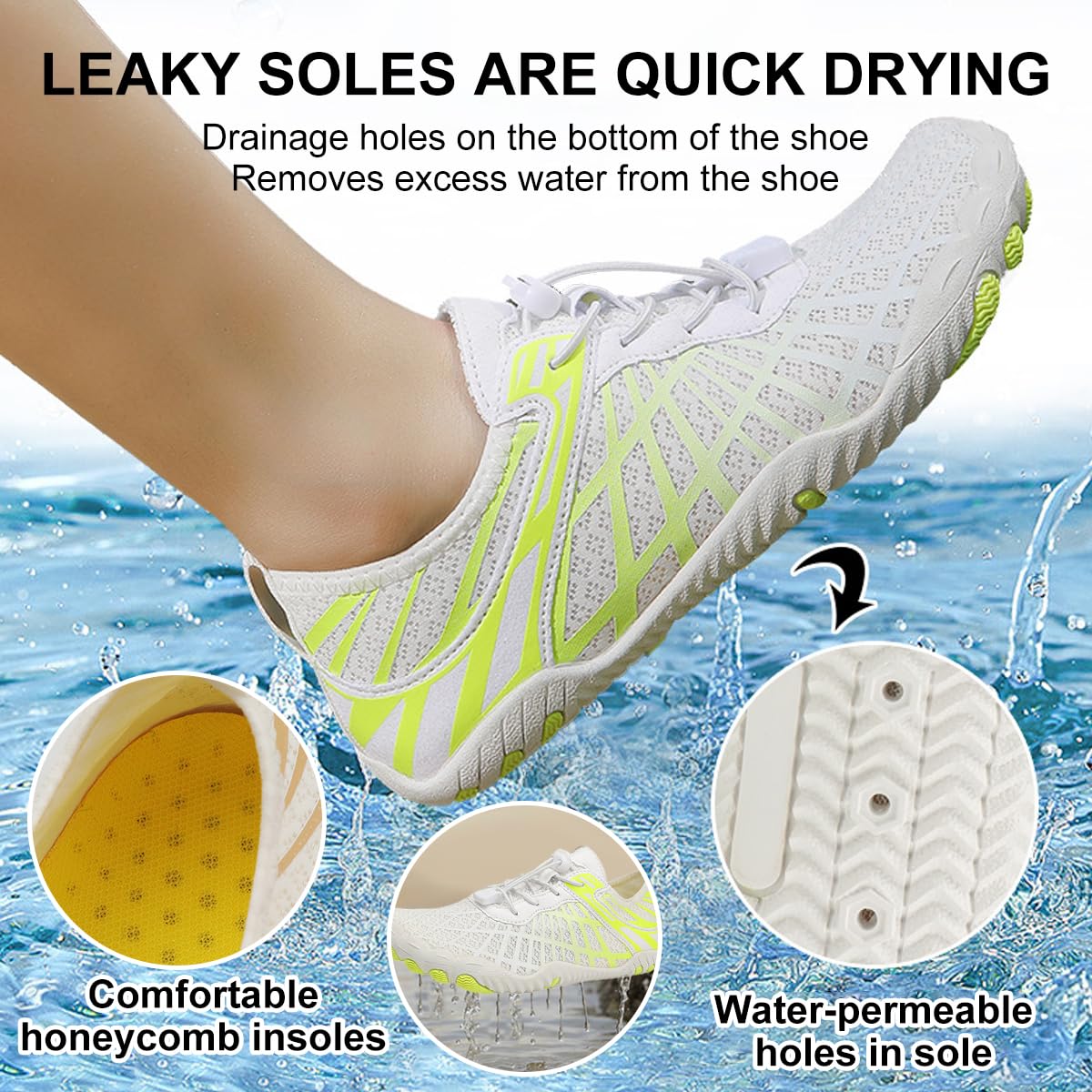 Wide Toe Box - Compared to the traditional trail running shoes, this women's barefoot shoe has a wider toe box design, which allows your toes to move and spread freely, promoting foot strength and flexibility. And this barefoot shoes has upgrade elastic drawstring allows you to quickly adjust the tightness of shoes and avoid the annoyance of tying your shoes.