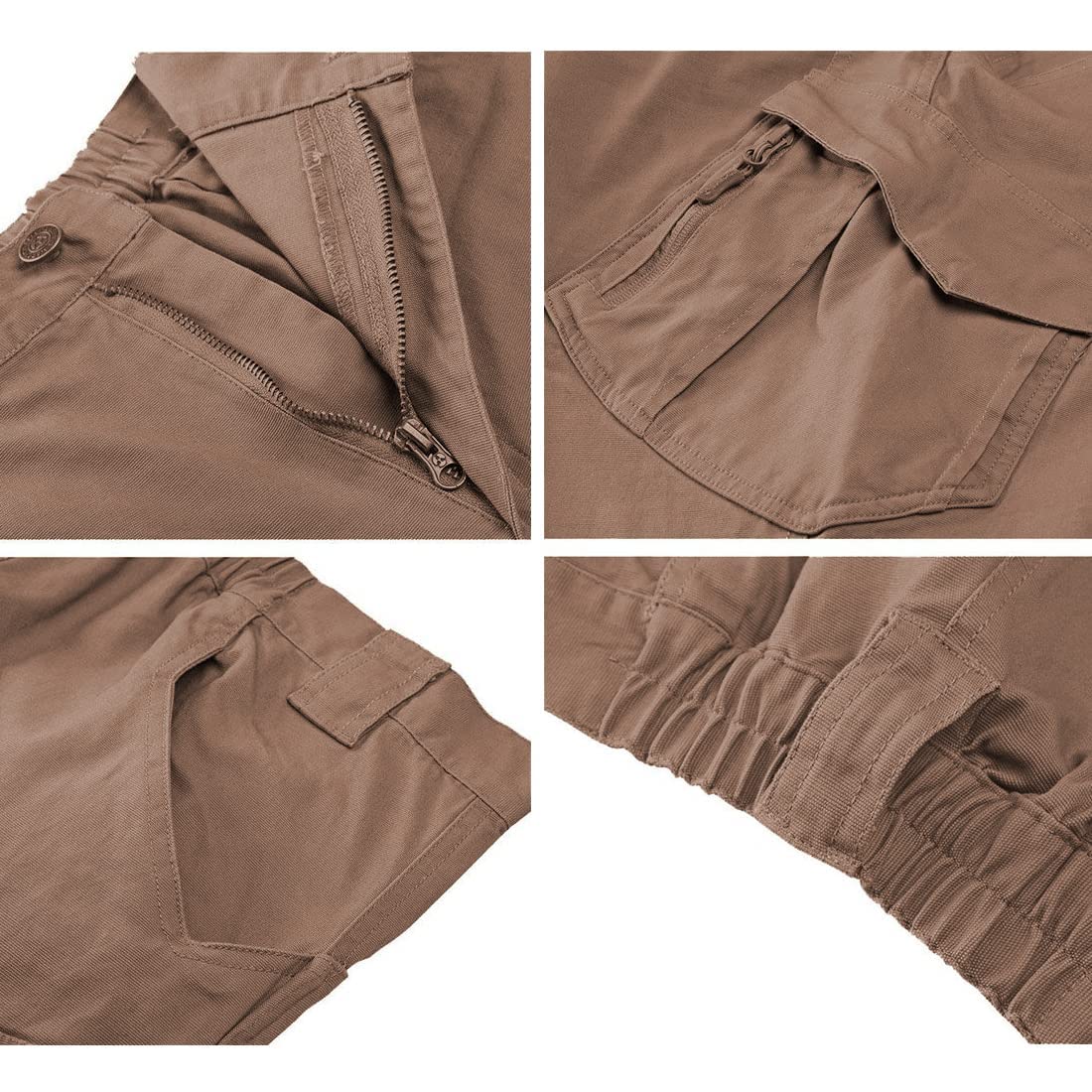 Tactical multifunction pockets design; Two deep front pockets with strengthened side gussets for handing flashlight and walkie talkie; Two Large back pockets with one small internal pocket; Two large expandable cargo pockets, carrying all your essential equipment; Two internal zipper closure pockets on both cargo pockets