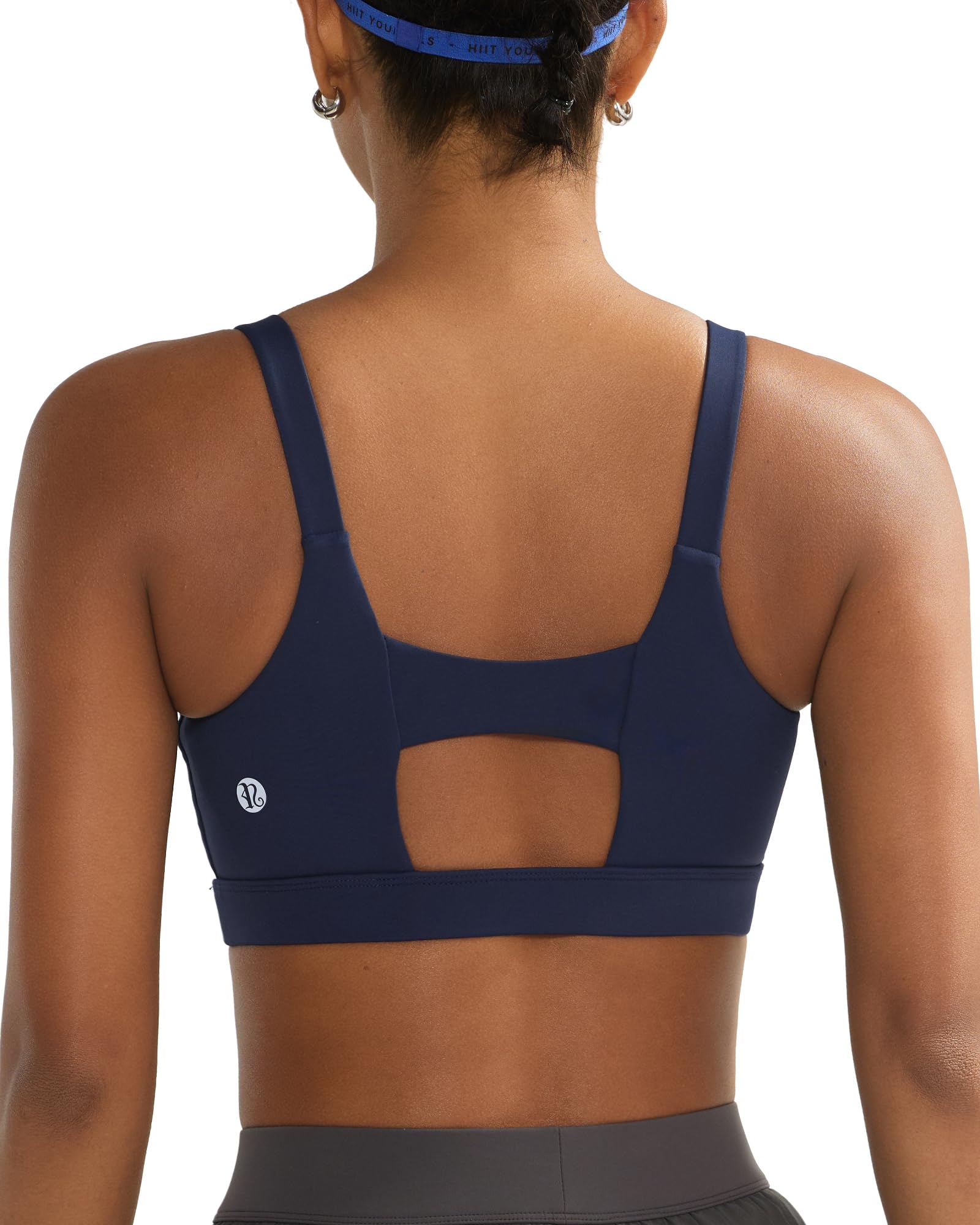 HIGH SUPPORT DESIGN:Running girl sports bras for women detailing gives the V-neck womens sports bras its signature style.But it doesn't just look good,it's hard working.And the sports bra for women wrapped in durably soft performance stretch fabric keep you comfy and supported.The cotton-like meterial,soft and comfortable to wear.High support sports bras for women let you twist with ease,High impact design offers a extra back support,fashionable and stylish,Stretch Fit Workout Tops for Women.