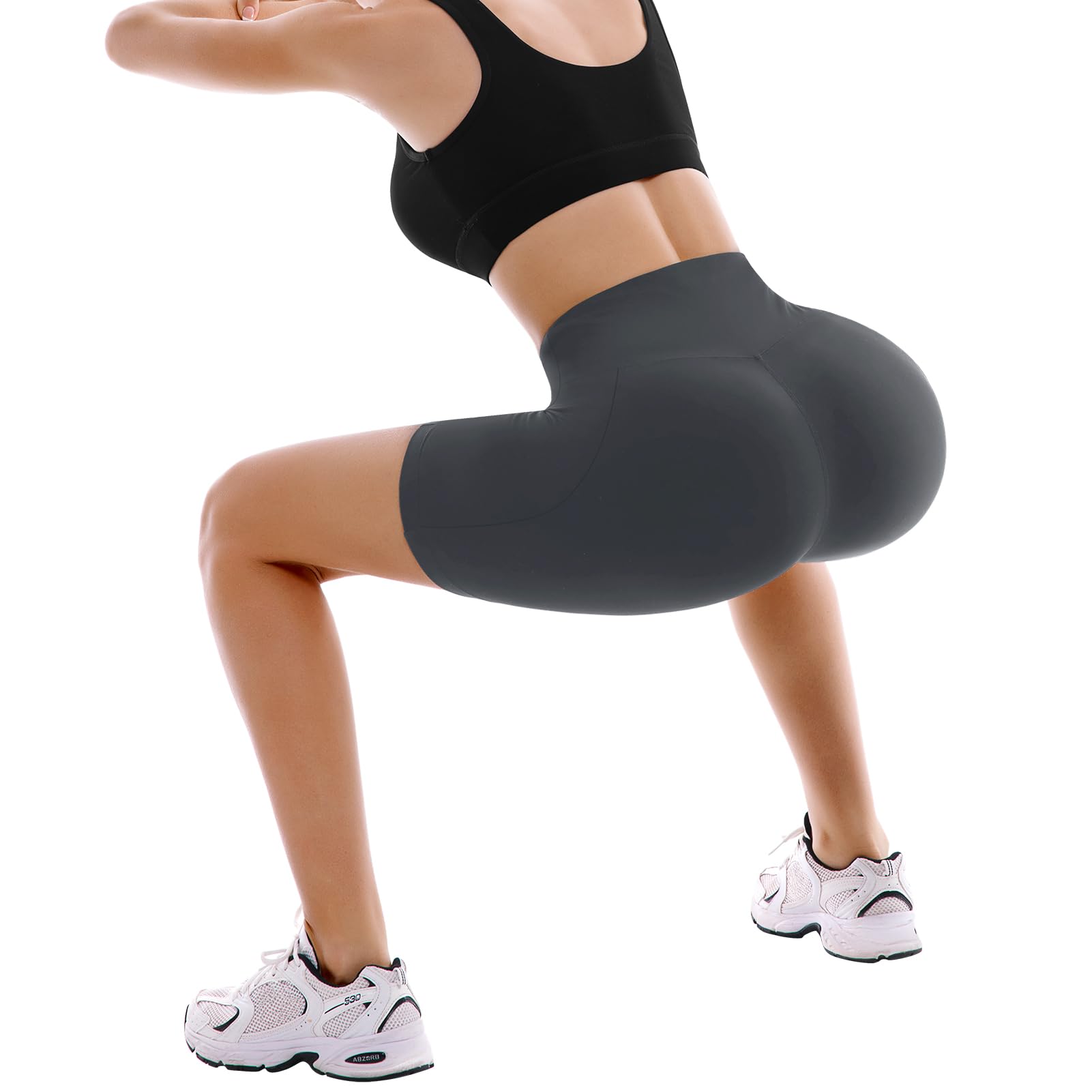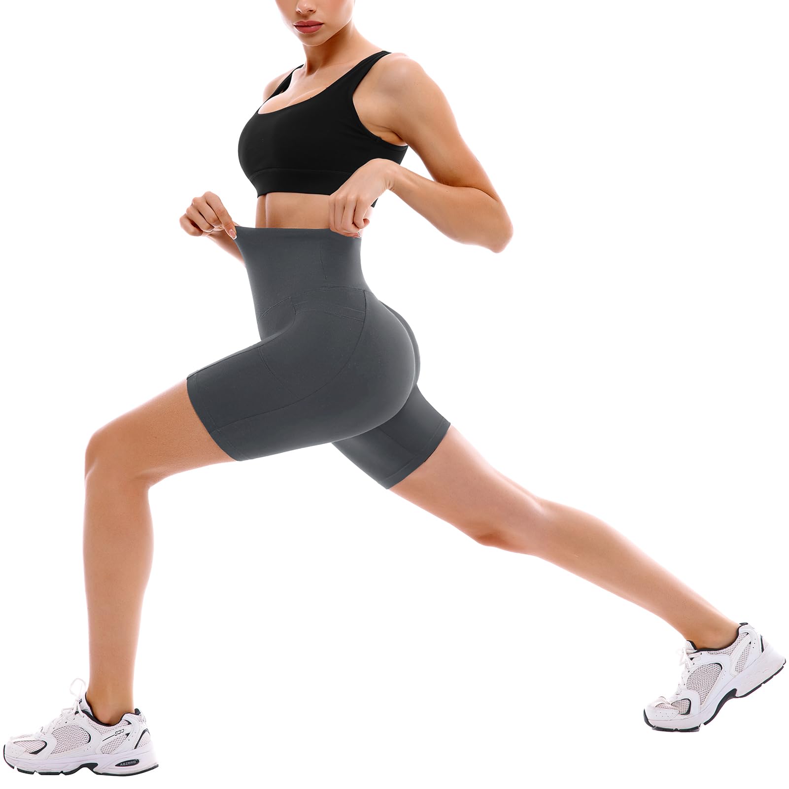 HIGH WAISTED AND TUMMY CONTROL: Fashion designed with high rise coverage, the running shorts for women can cover your abdomen and provide you with warmth; The yoga shorts for women can also give you a fit appearance