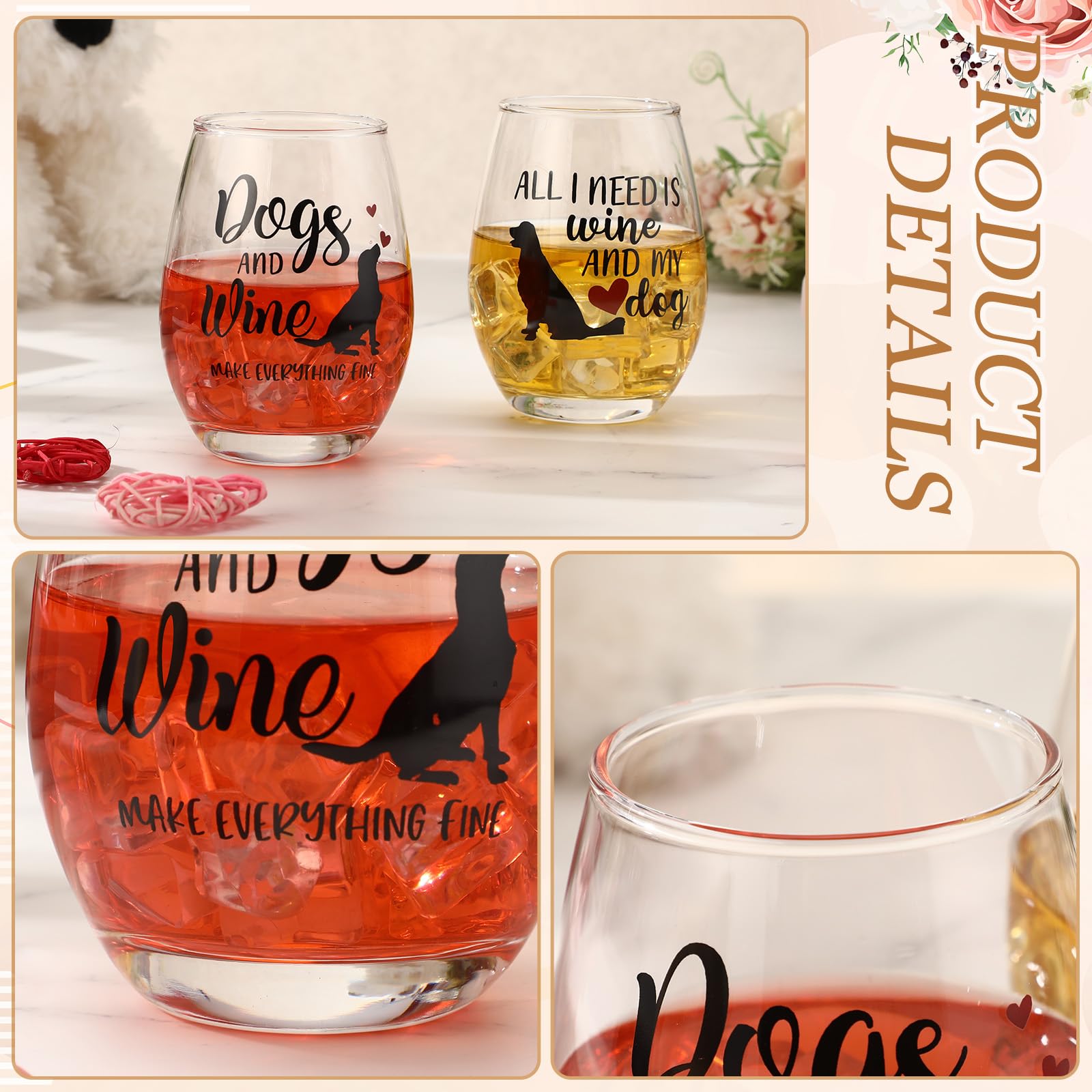 Features: Design and Functionality Our customized dog - lovers glass set offers a unique and fun design. With 15 oz stemless glasses in black and dark red, they feature laser - engraved funny dog - themed patterns, adding a touch of amusement to the sipping experience. Besides being eye - catching, these glasses are practical. They are dishwasher - safe, saving you from the hassle of hand - washing and allowing for easy maintenance. This set is perfect for various beverages and occasions, making it an ideal gift for dog enthusiasts. Good Quality and Secure Packaging We focus on providing high - quality products. The glasses are made from premium - grade glass, fired at high temperatures to ensure scratch resistance and durability. Each glass is carefully wrapped in full - layer pearl cotton and placed in a sturdy brown box for secure delivery. Our commitment to quality extends to both the product and its safe arrival, and our customer service team is always on standby to assist you with any questions or concerns. Specifications: Material: Glass Color: Black & Deep Red Size: 15 oz Package includes: one black and one dark red stemless wine glass with dog - themed patterns Notes: Manual measurement, please allow slight errors on size. The color may exist a slight difference due to different screen displays.