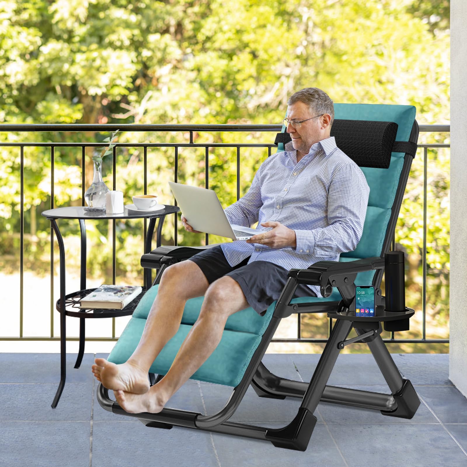 Comfortable Design: The outdoor zero gravity lounge chair is designed to satisfy your ultimate comfort. The armrest of folding lounge chair is thick and contoured. It will serve you whether sitting or lying, outdoor and indoor. Our recliner chair comes with a thick and soft pad
