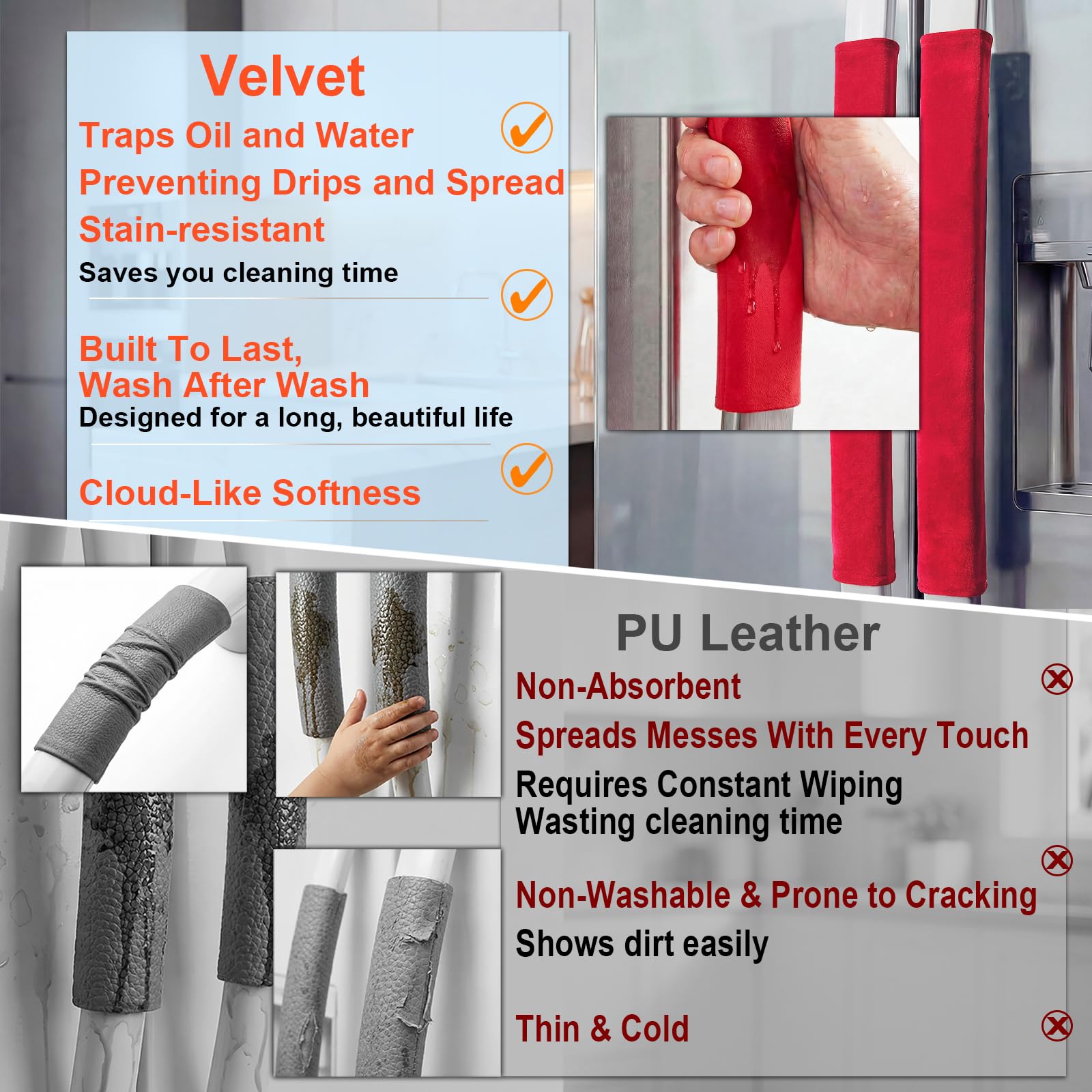 No More Fingerprints&Dirt - Our handle covers go beyond just protecting your appliances from fingerprints, scratches, and grease. They also serve as a elegance piece of home decor, adding a vibrant touch of color and life to your kitchen.