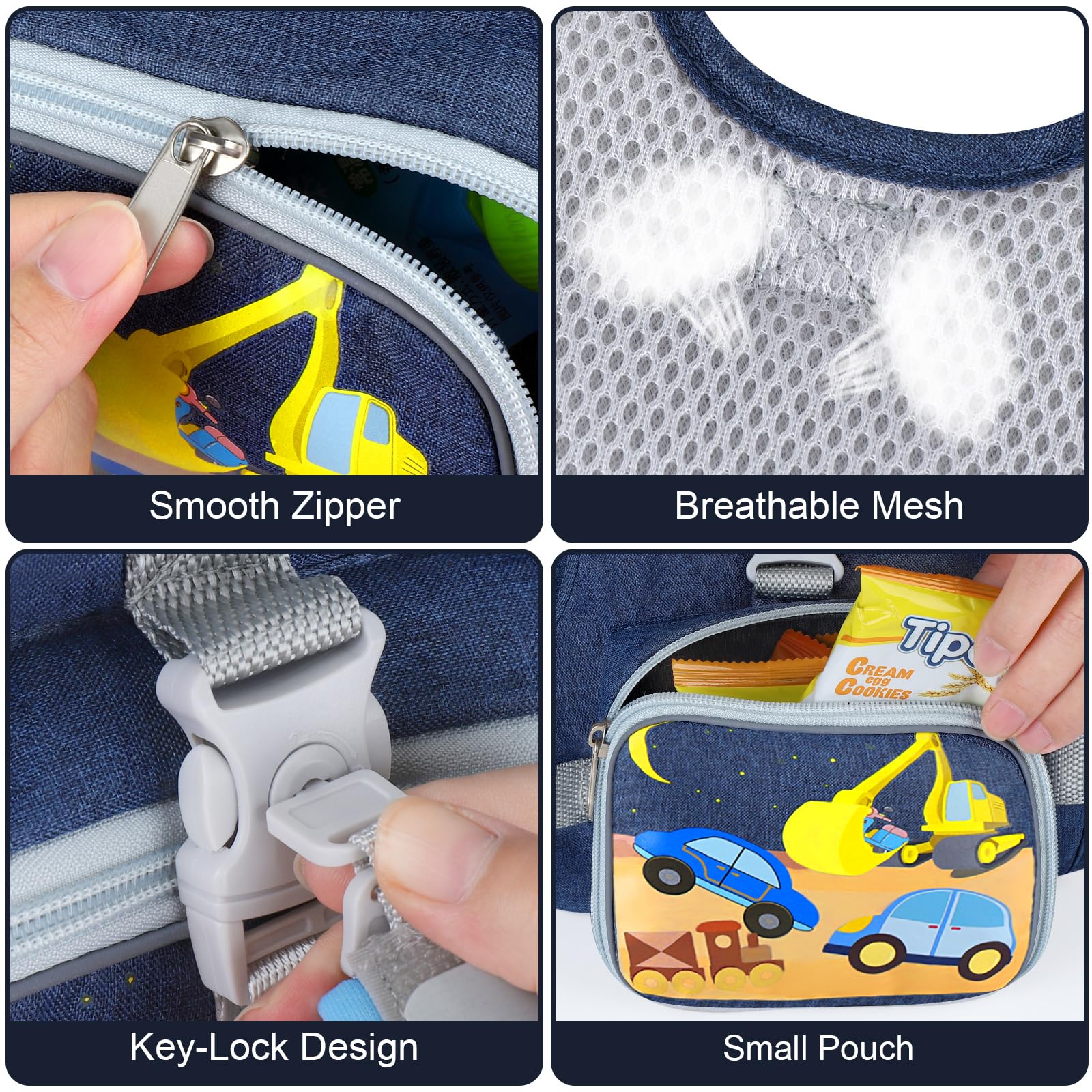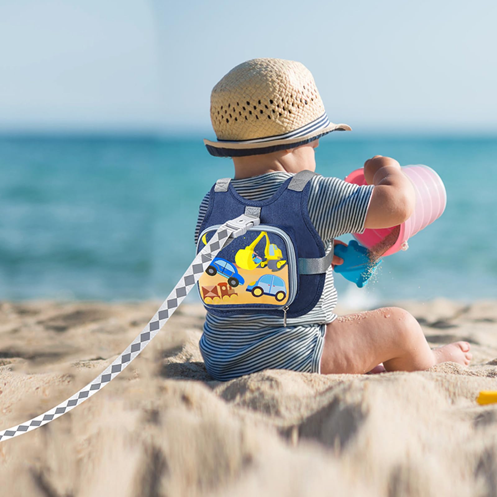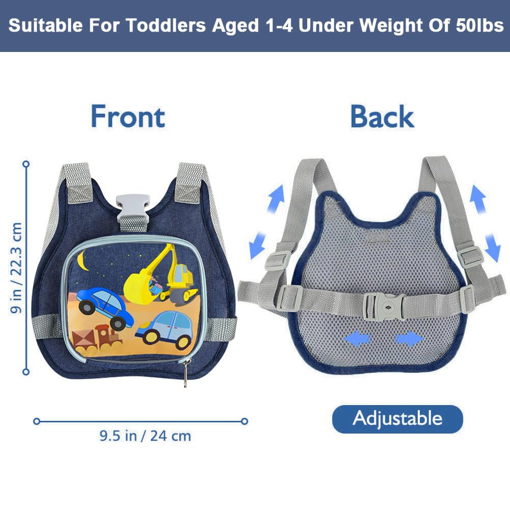 Adorable & Comfortable: The baby harness with lovely cars and excavator patterns that your child will be very glad to wear. It made of cotton material and mesh, soft and safety, The breathable mesh cloth on the back is highly increasing the comfort.