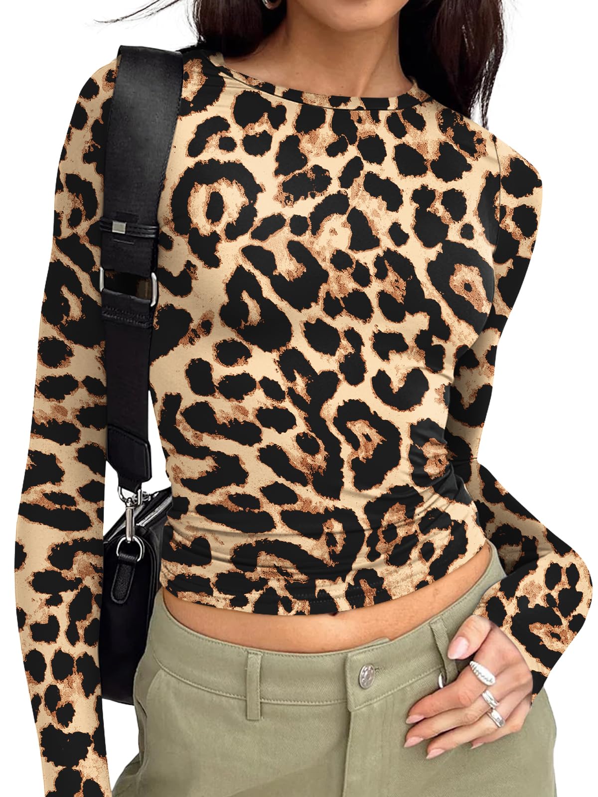Design: Cropped and stretch fitted style,crew neck, tight underscrubs layer,you can wear it regularly or fold it up like a crop top,cute,slim fit,casual y2k style fashion