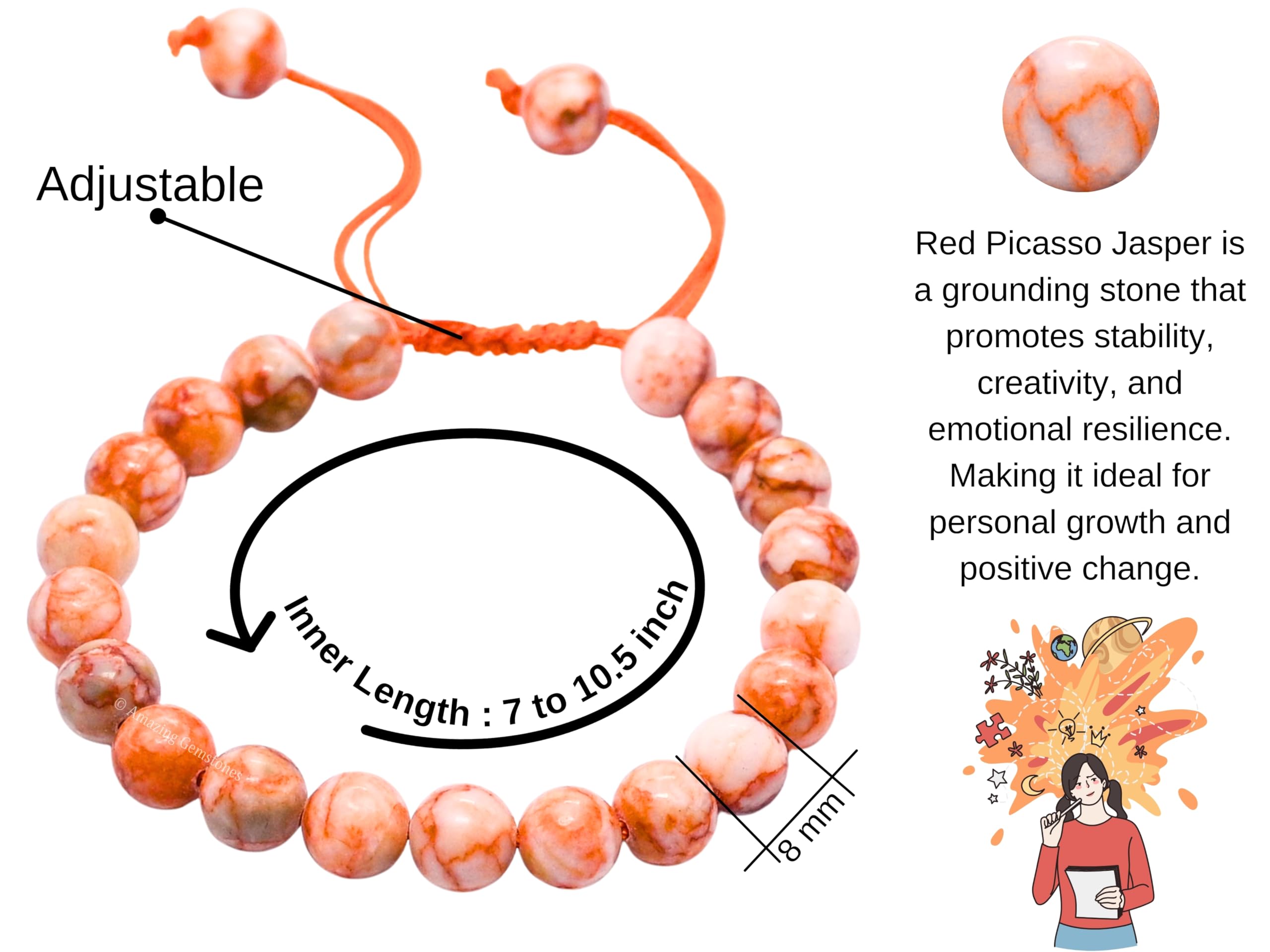 Natural : These Red Picasso Jasper Bracelets are handmade with high quality authentic natural gem stone beads.