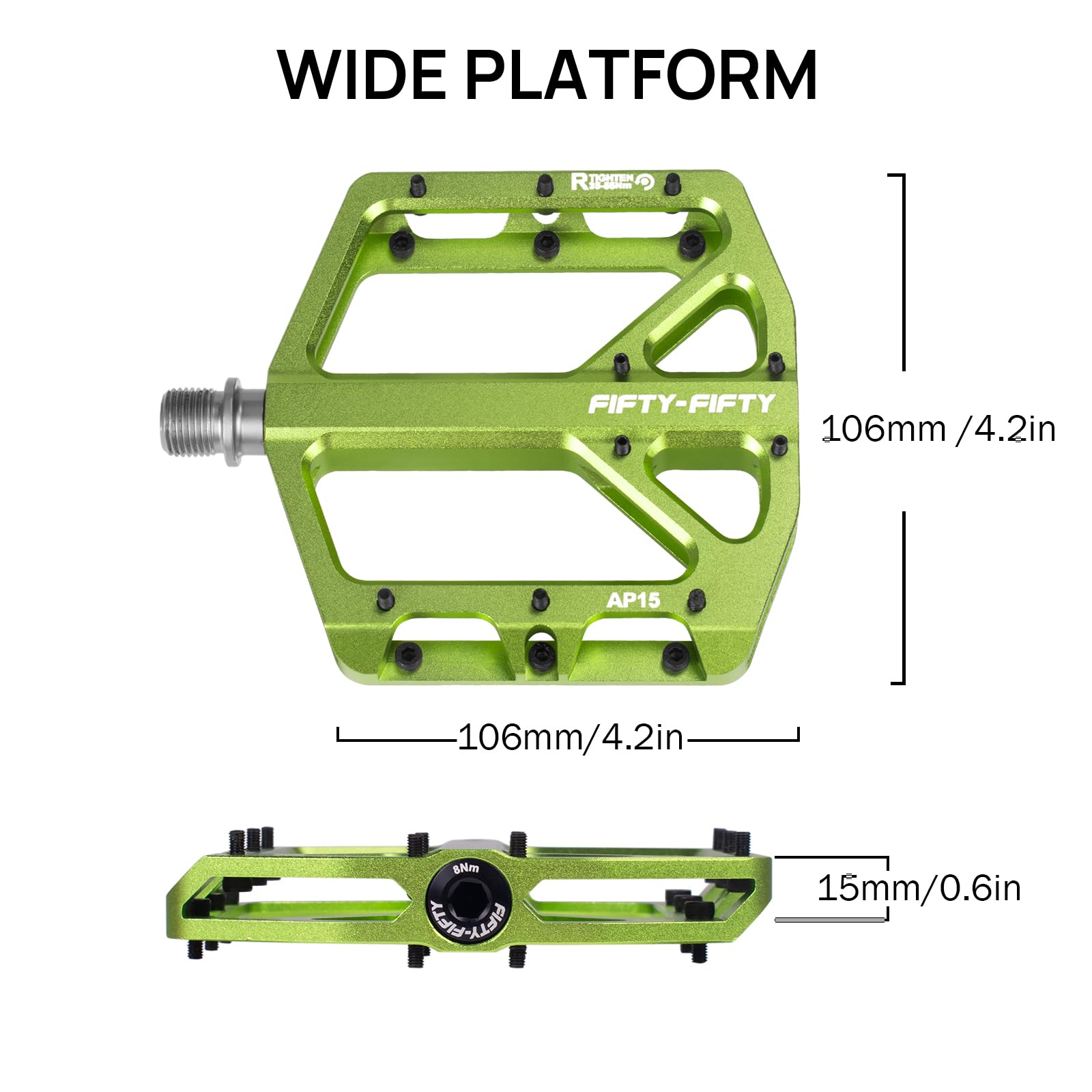 Ultra-Thin and Wide Platform: The bike peals only 0.6" thickness, ultra-thin design gives you max clearance to reduce pedal strikes and deflect off trail obstacle, 4.2"x4.2" (L x W) large platform pedals will provide more support, allow you to adjust position and angles as needed during long rides