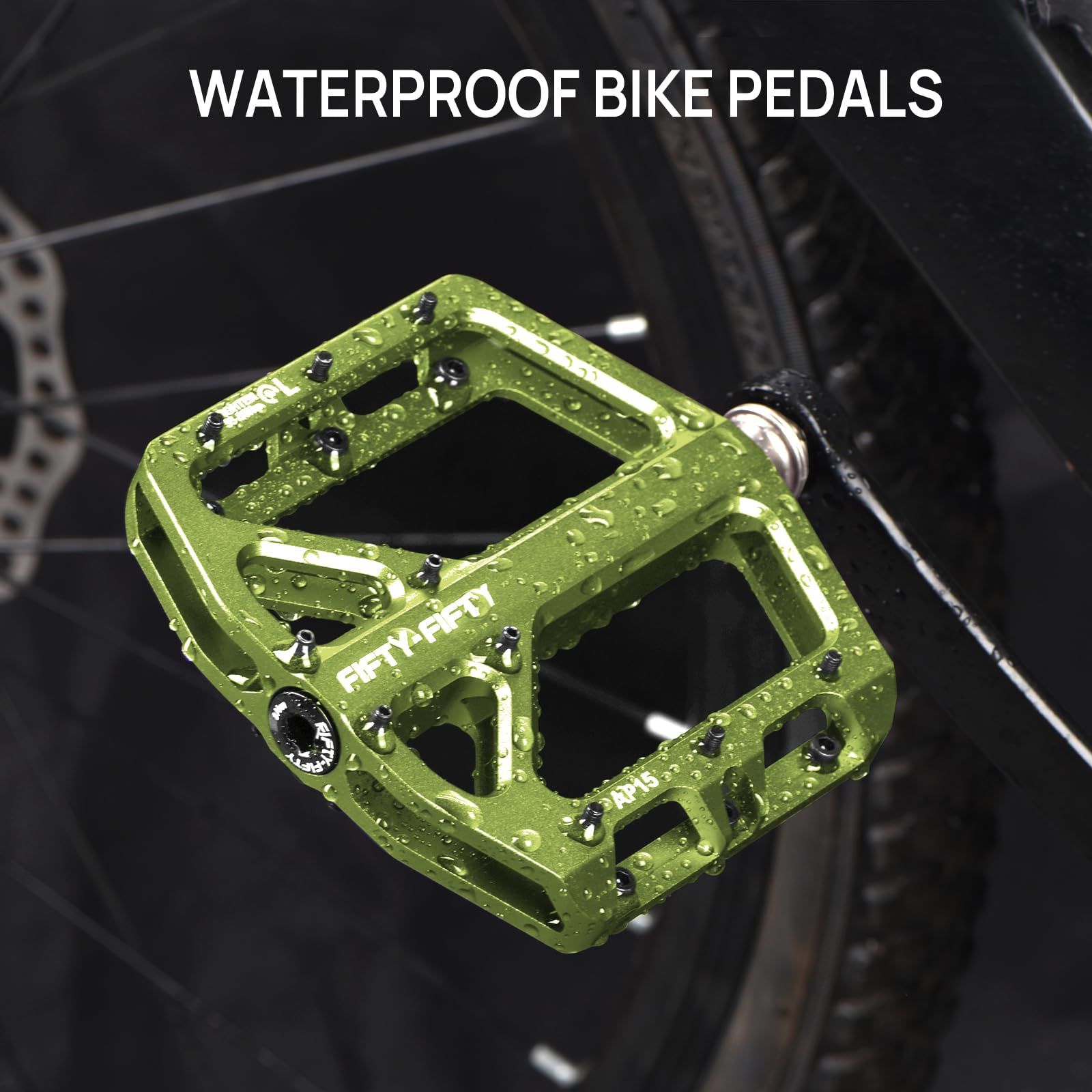Strong and Durable: The mountain bike pedals are made of CNC machined 6061 T6 Aluminum Alloy bike pedal body optimized and high strength Cr-Mo spindle for a long lasting durability in any terrain, even under the toughest conditions