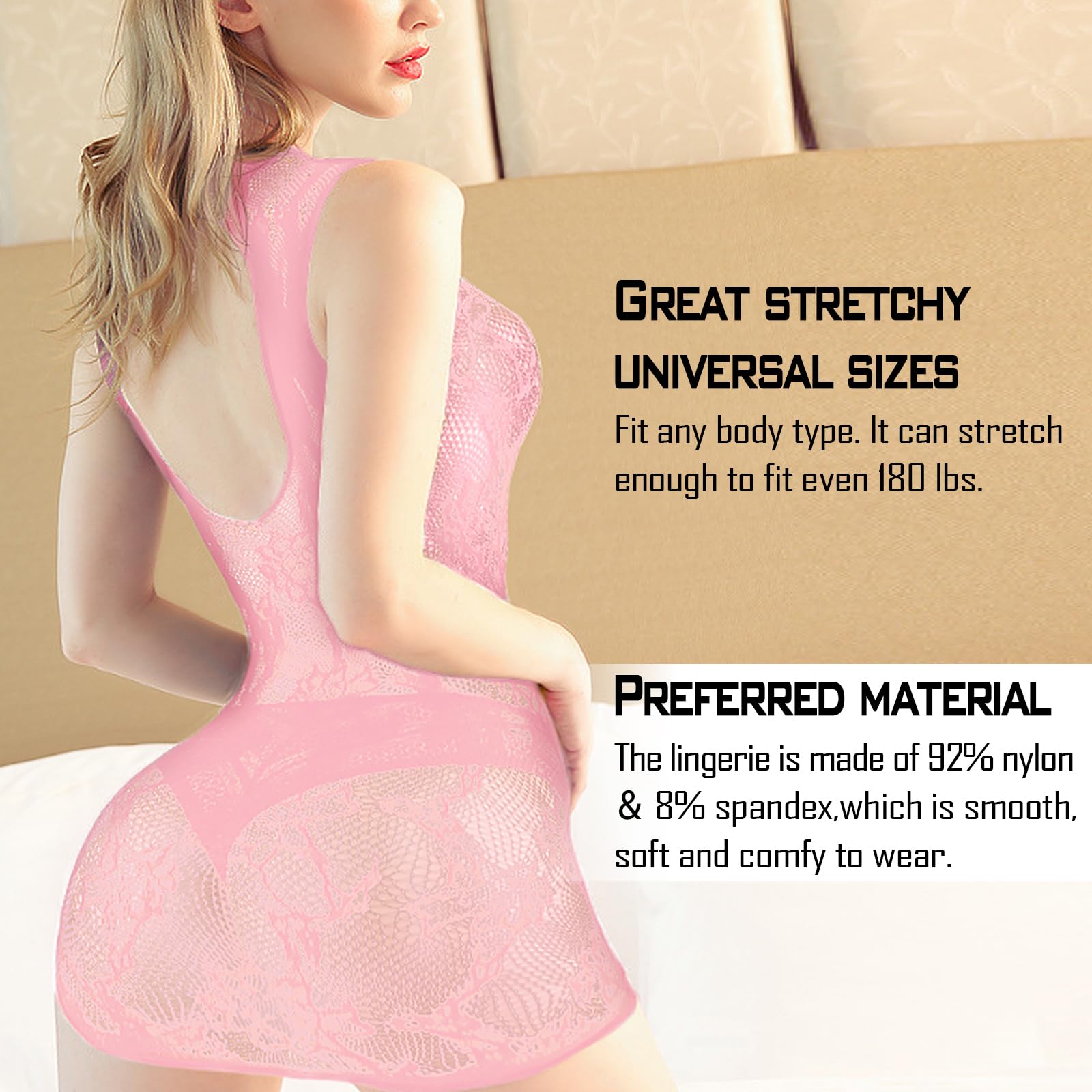 πFitted underwear:Universal sizes fit any body type. It can stretch enough to fit even 200 pounds. You won't struggle with what size to choose and no need to worry about the sexy lingeries that doesnβt fit .Excellent one-piece construction, easy to put on.