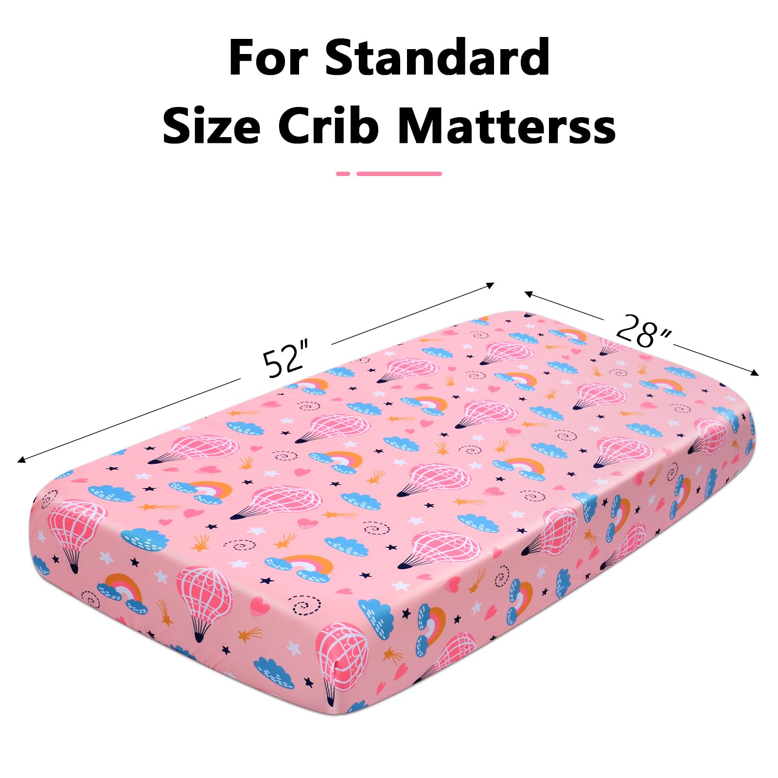 【Perfect Fit for Crib & Toddler Mattresses】:Designed to fit standard crib and toddler mattresses (52" x 28"), our fitted sheet features a deep pocket and elastic edges for a snug, secure fit. No more slipping or bunching—just a smooth, safe surface for your baby to sleep on.