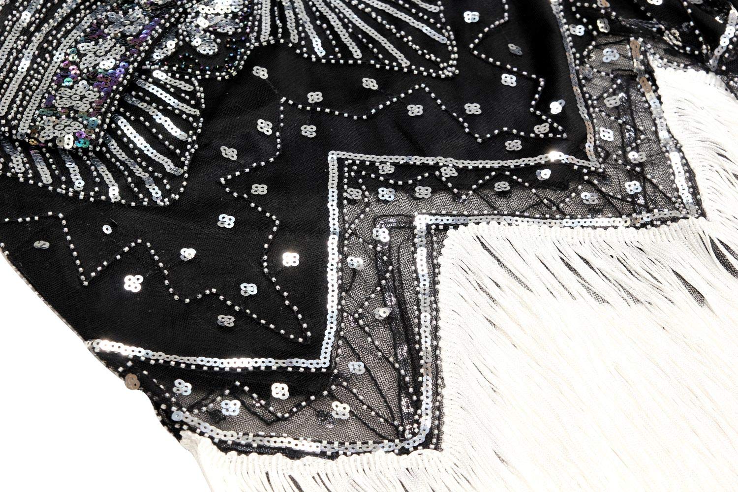 Package include: 1 x 1920S Sequin Tassel Flapper Dress , 2 x Pearl Necklace ; 1 x Long Satin Gloves; 1 x Black Cigarette Holder ; 1 x Headband ; 2 x Earrings ; 1 x Pearl Bracelet ; 1 X Pearl Brooch ; 1 x Pearl Open Ring.