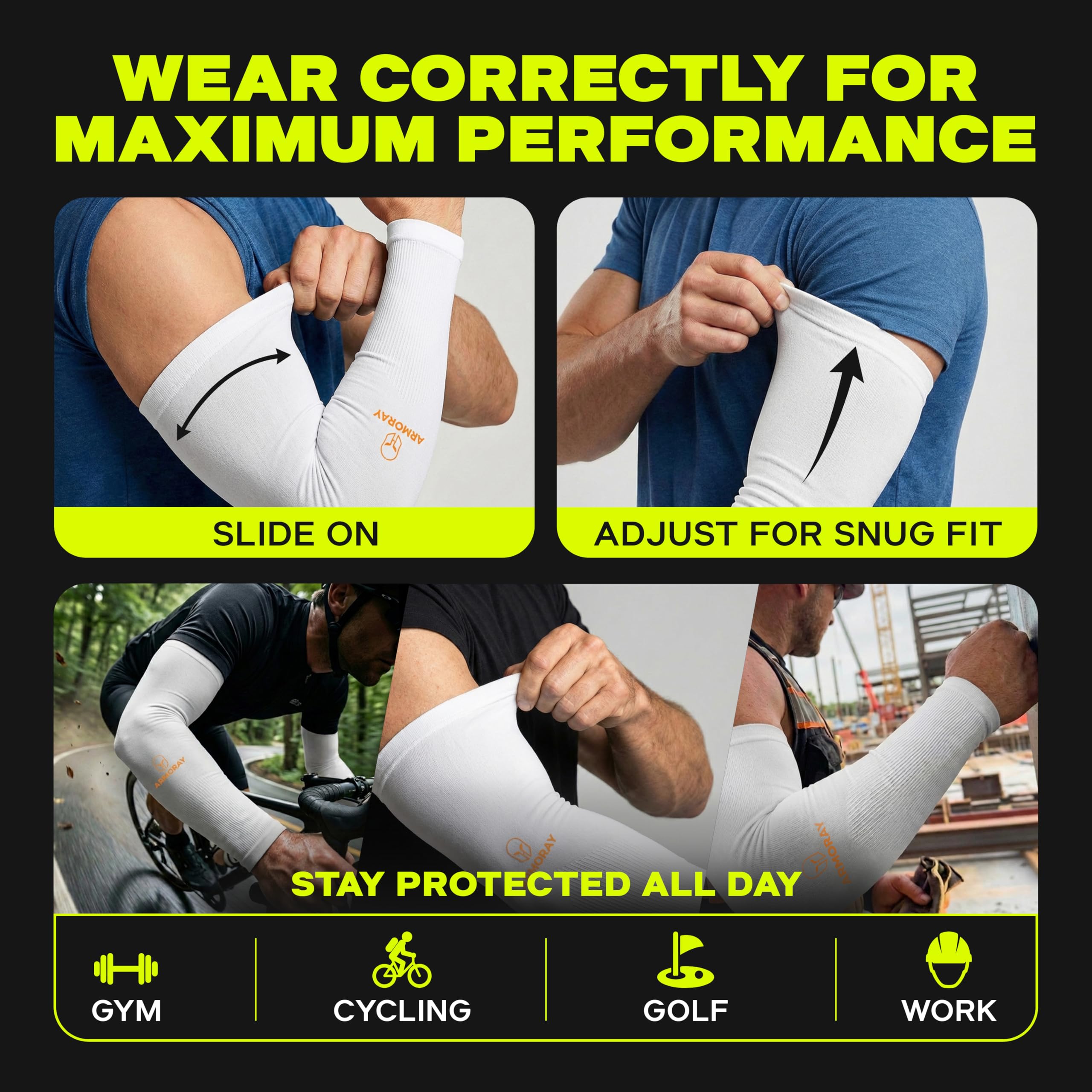 ULTIMATE Sun Protection: Designed with UV protective fabric to help shield your skin during outdoor activity. Ideal as sun sleeves for men and women for running, cycling, golf, and everyday use under direct sunlight.