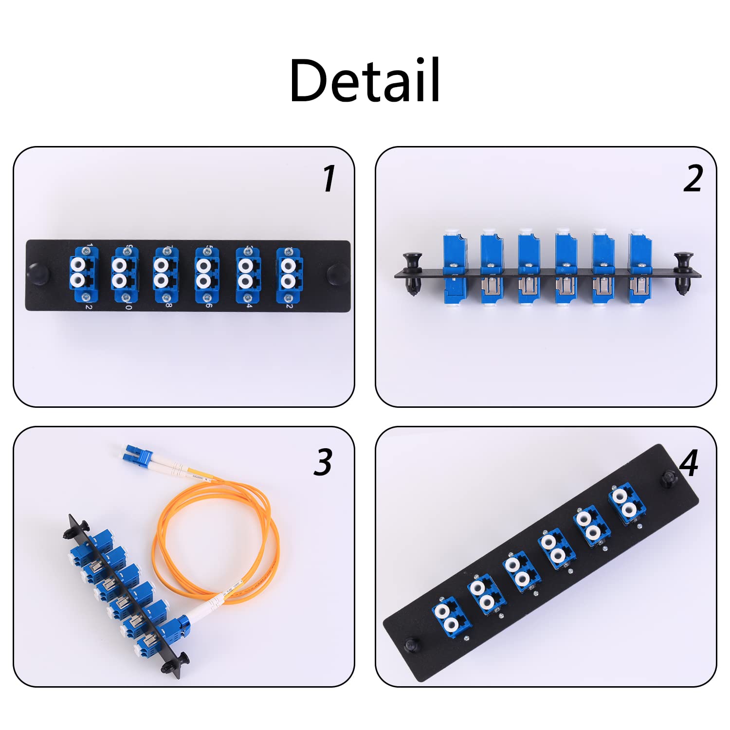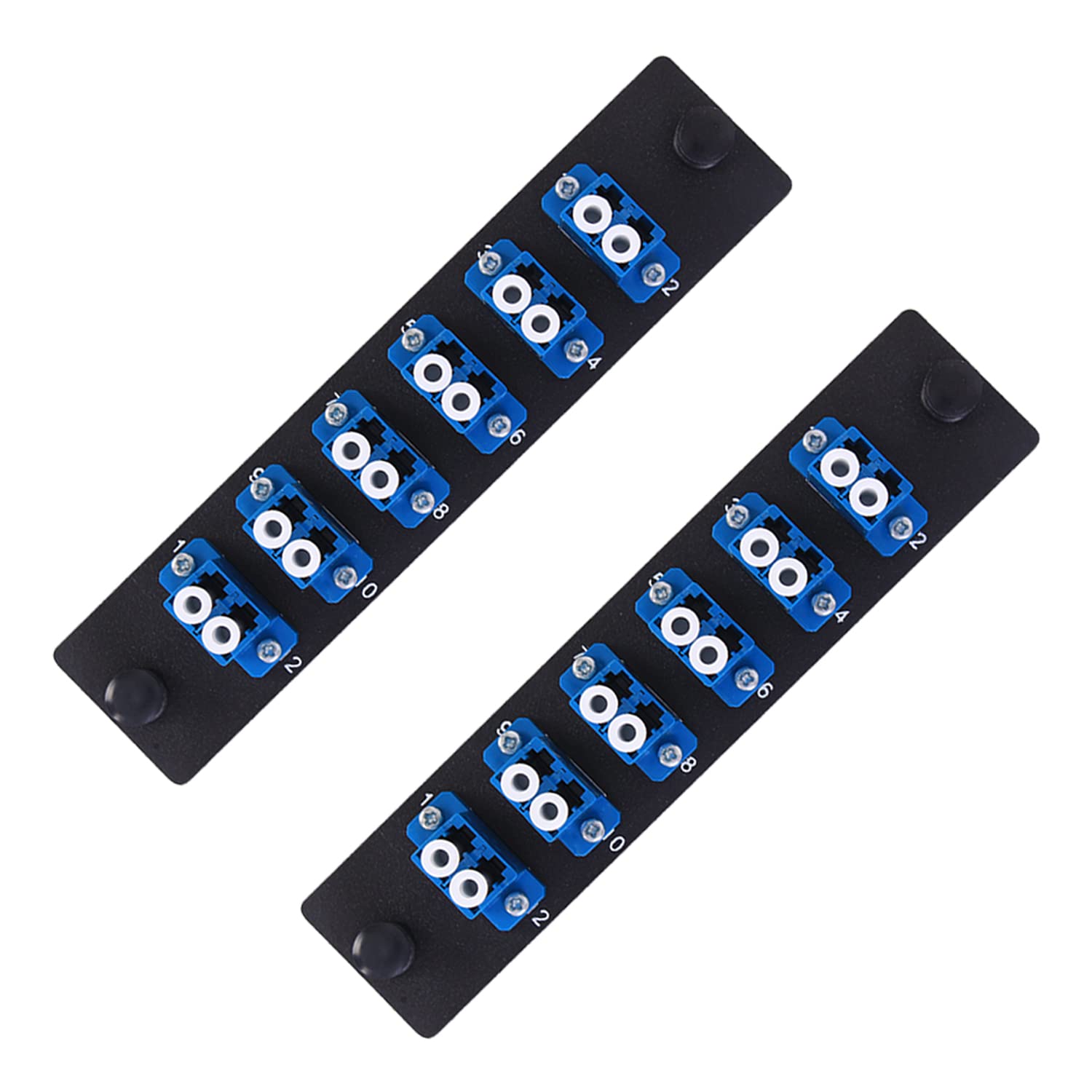 2PCS LGX Footprint Fiber Patch Panel Loaded with 6 Duplex LC 12 Fiber Ports Adapters, Streamlines Fiber Optic Cable Patching Ceramic Inserts, Constructed in High Quality Steel with Black Color Electro Static Powder Coating;★ LC-LC Duplex Fiber Optic Couplers/Adaptors to join two duplex fiber patch cables together. Securely connect 9/125 singlemode or 62.5/50/125 multimode fiber optic patch cables.