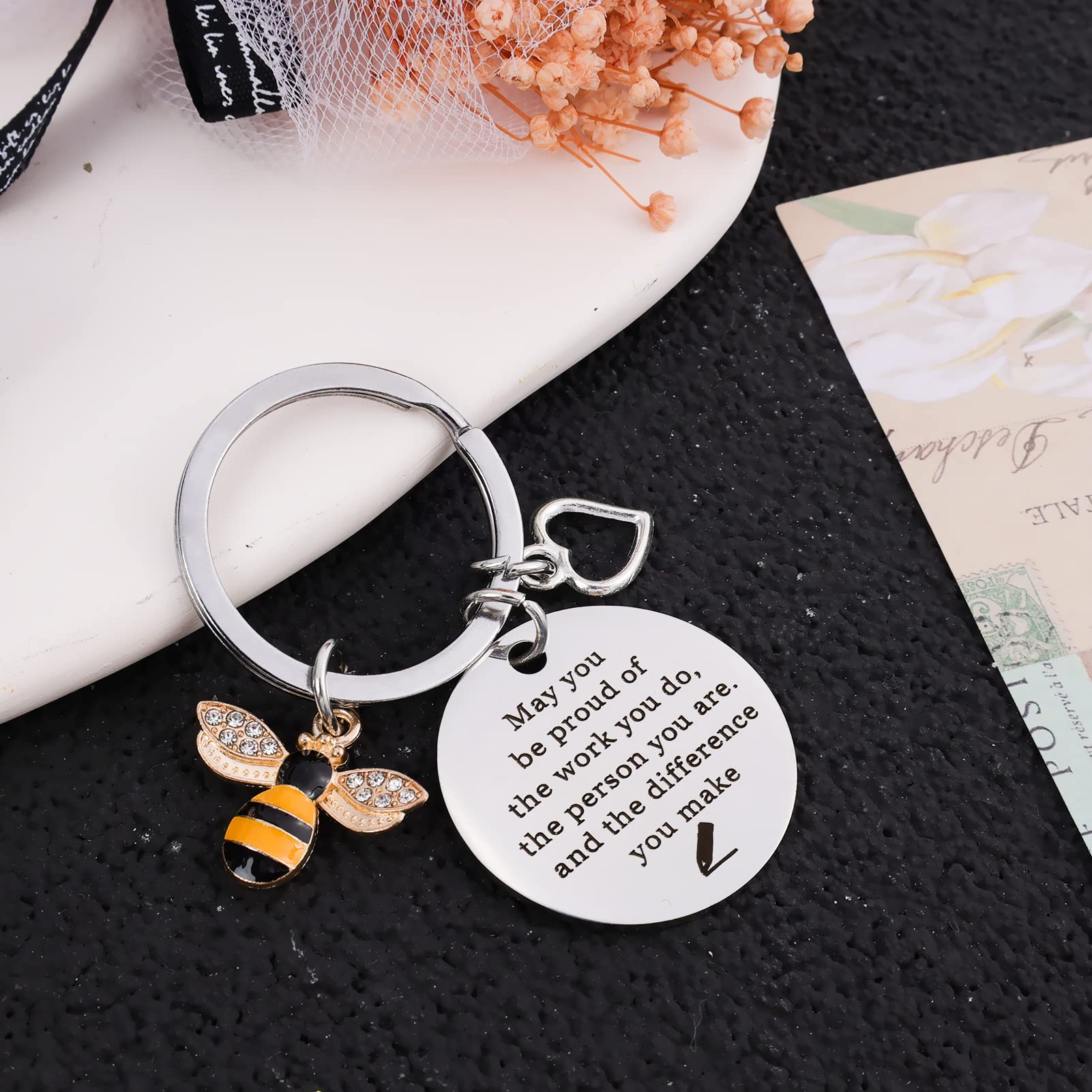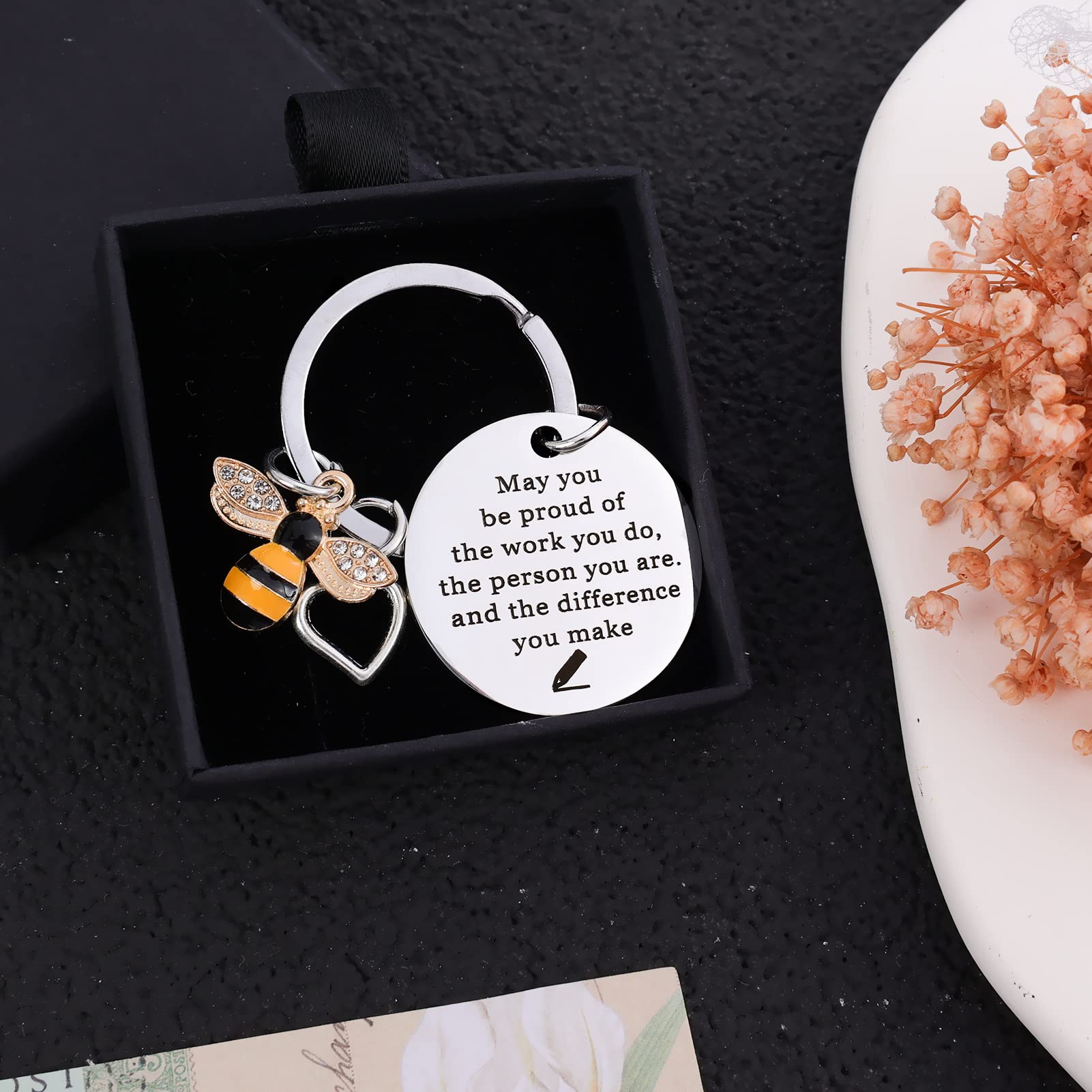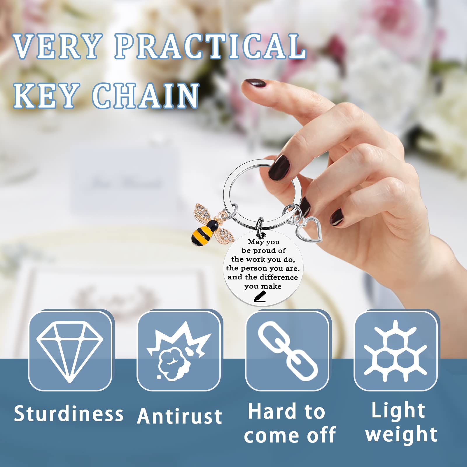 Bee Charm Keychain:This cute keychain lettering with the words“May you be proud of the work you do the person you are and the difference you make”can be a great appreciated gift for teacher or special you want to say thank you,new teacher gifts