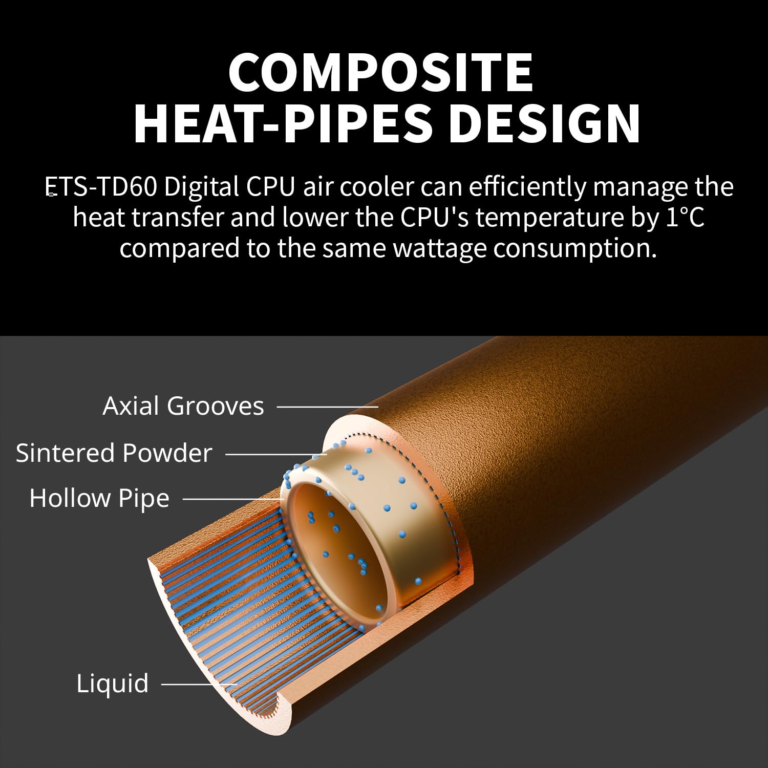 Enermax It features the ETS-TD60 Digital CPU Dual-Tower Air Cooler, a high-performance cooling solution for sophisticated PC builds and overclocking in a near-silent system. With the dual tower design, two 120mm FDB fans and six Ø6mm composite heat pipes, this radiator offers superior cooling performance up to 250W TDP. Digital temperature display offers real-time monitoring of CPU temperatures, GPU and fan speed for maximum control, avoiding potential failures. Nickel coated copper base ensures even heat distribution and eliminates hotspots for optimal heat transfer. It is particularly suitable for use with liquid metal thermal paste to irritate the last % of the CPU limit. Thanks to the heat-pipe composite design, heat can be dissipated particularly efficiently and can reduce the temperature by up to 1°C compared to conventional heat pipes. The ARGB ETS-TD60 Digital Cooling Unit is the perfect choice for gamers, overclockers and PC enthusiasts who want to combine high cooling performance with a stunning design. Thanks to the high quality dynamic fluid bearing, we offer a quiet yet durable fan with 5 year manufacturer's warranty. CPU Socket Compatibility: AMD AM4/AM5, Intel LGA1851/1700/115x1200 with Dow Corning TC-5888 high-performance thermal paste.