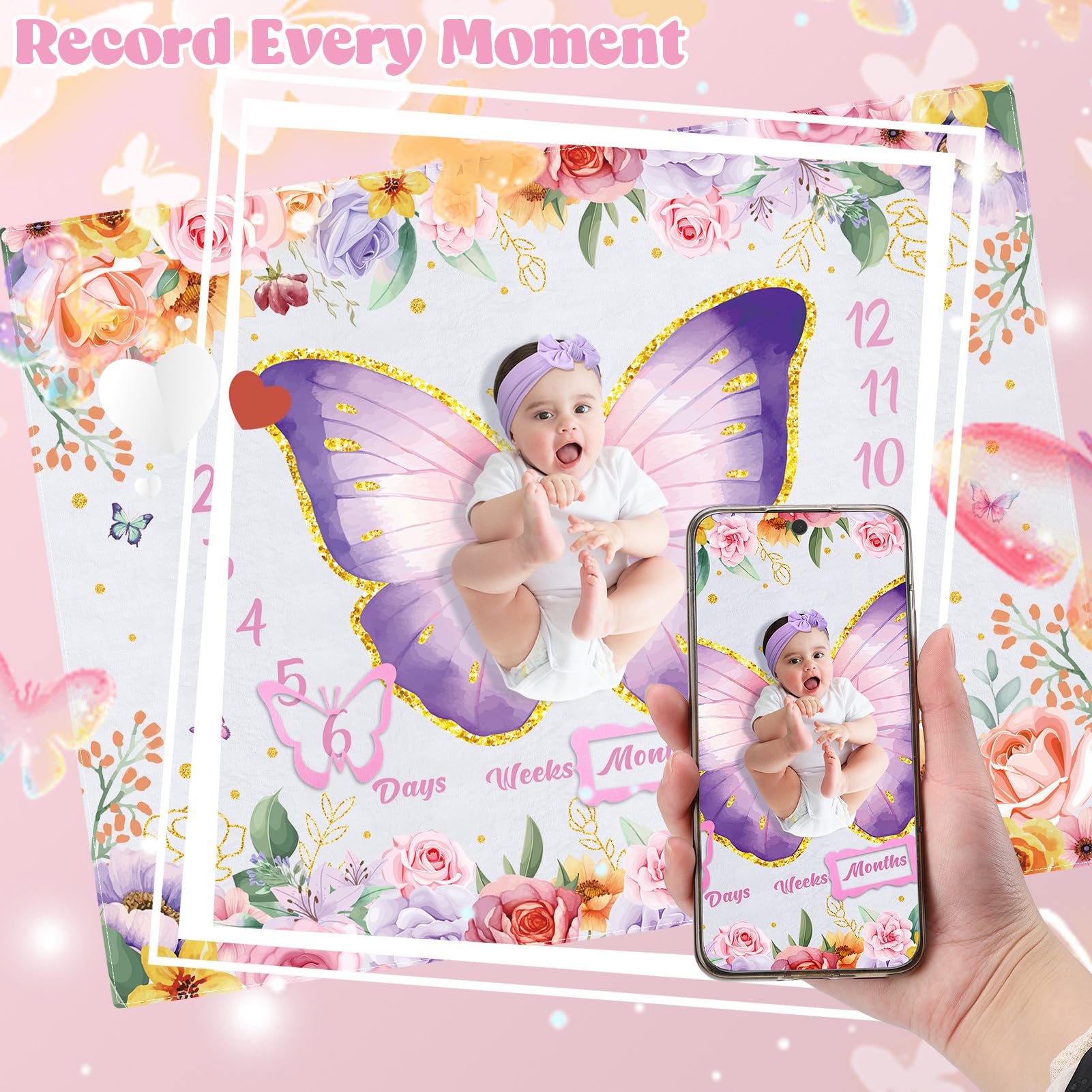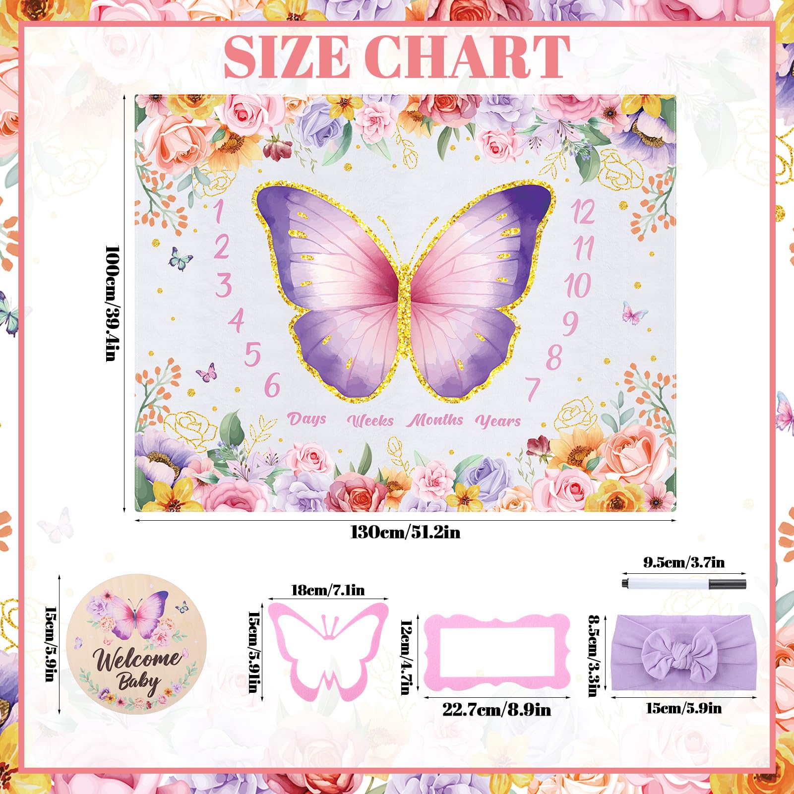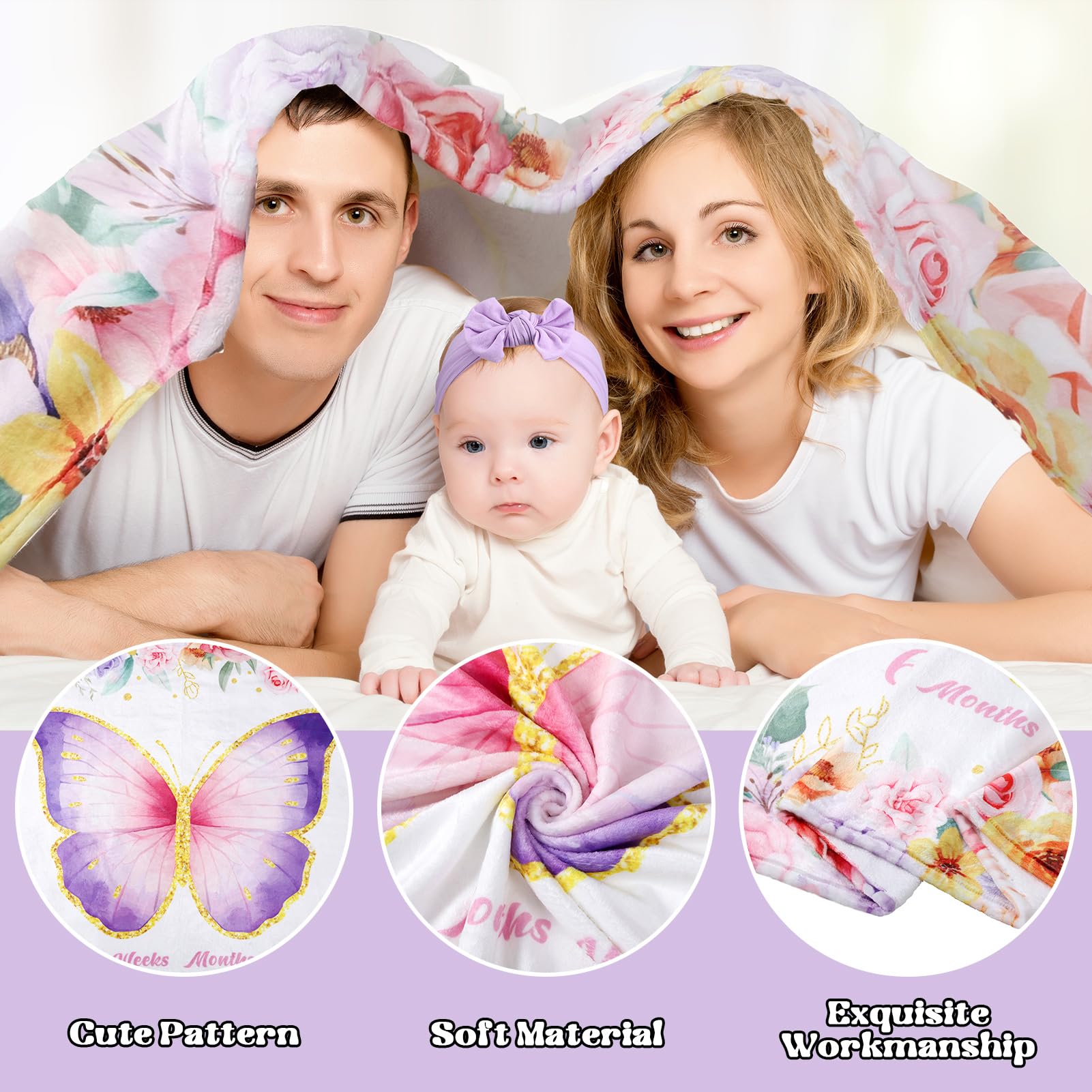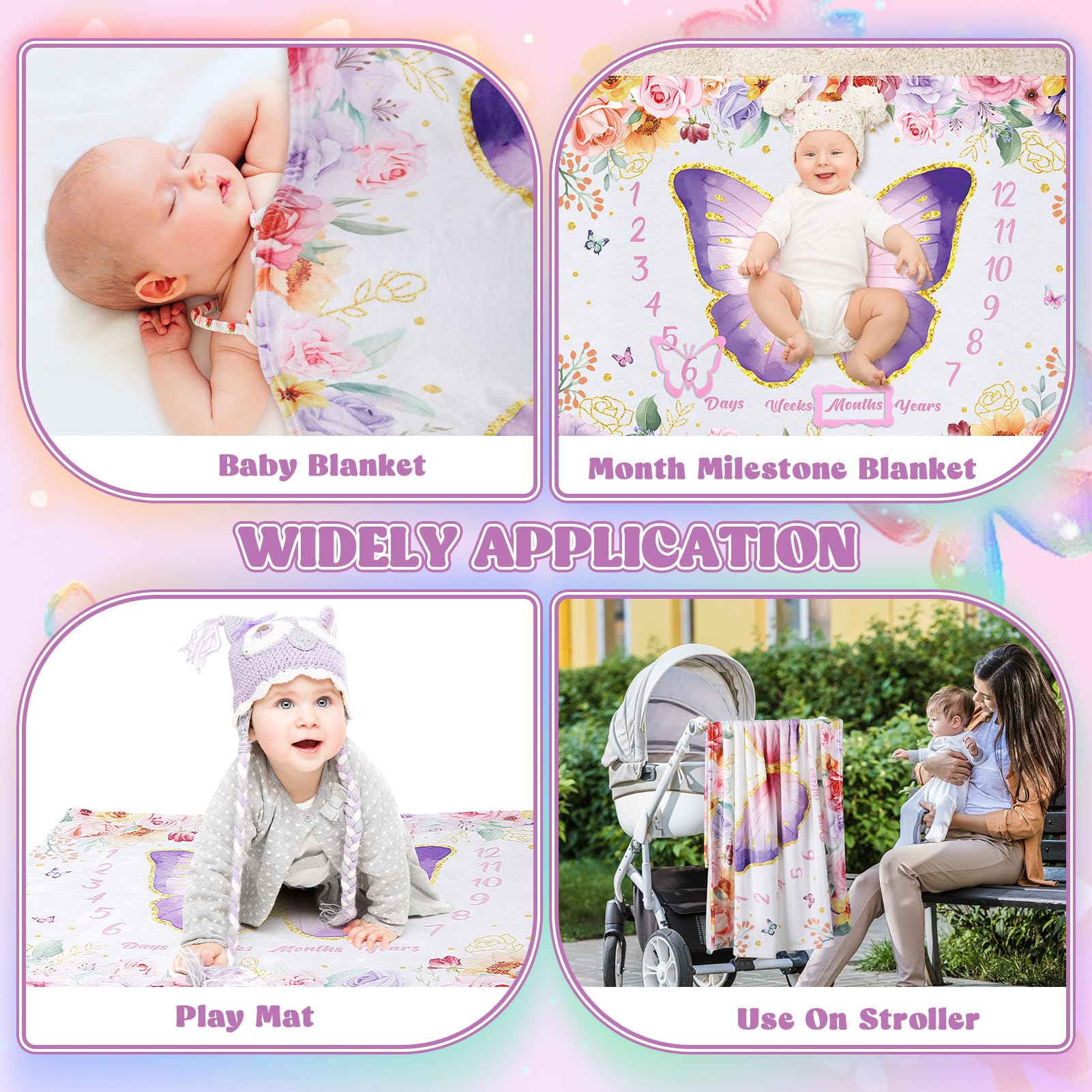 Ideal Gift: This baby monthly milestone blanket designed with butterflies and flowers, that suitable to capture beautiful moments, add a touch of cuteness and playfulness to photo, it is a good and useful gift for new parents.