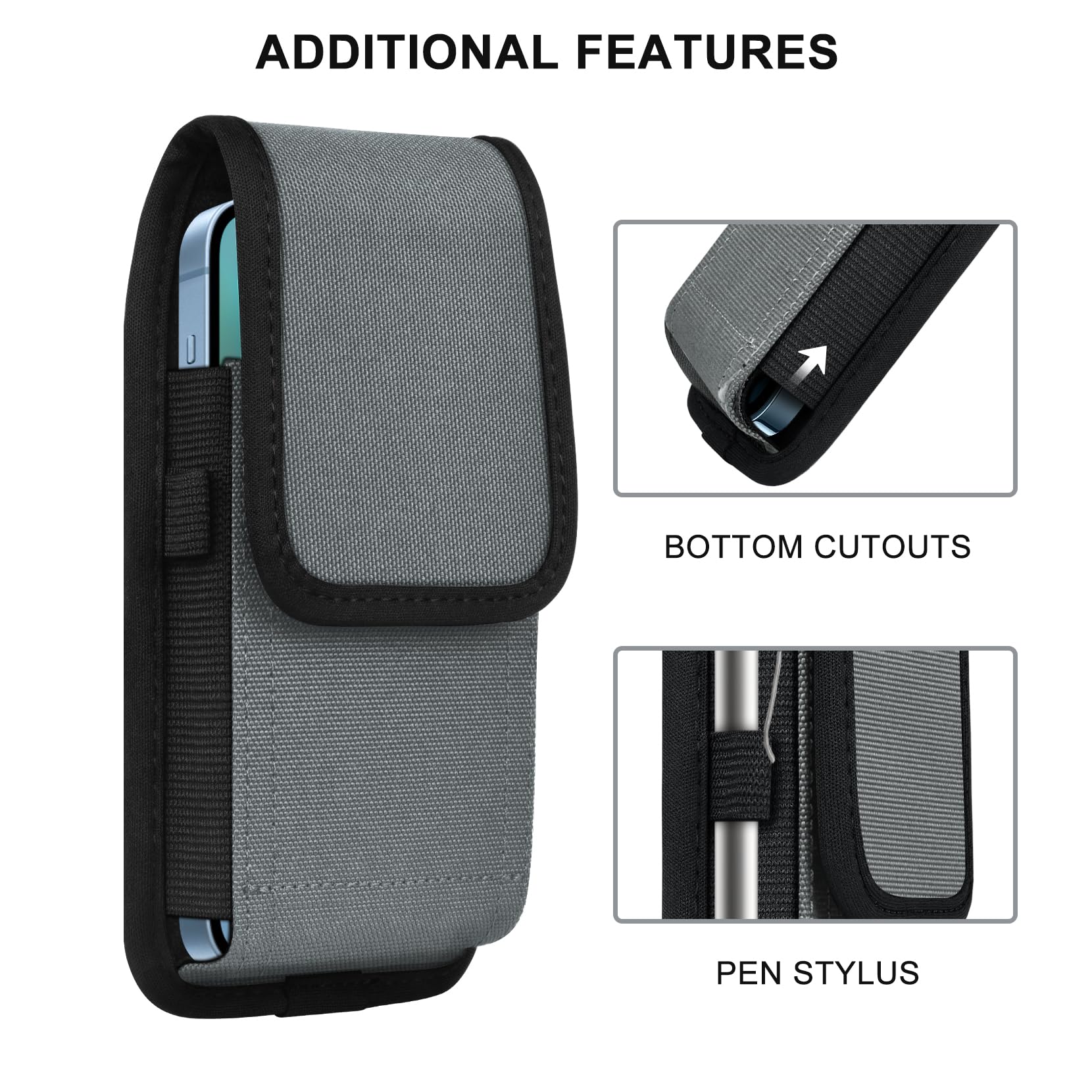 Premium Material: This cell phone holster with belt loop is handcrafted from nylon, fine and tight stitching and durable; Suitable for camping, hiking, outdoor-living, trekking