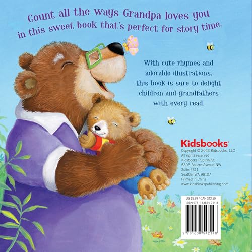 Count all the ways that Grandpa loves you in this sweet book that's perfect for story time. With cute rhymes and adorable illustrations, this book is sure to delight children and grandfathers with every read. This heartwarming counting book is sure to become a favorite for both children and grandpas. • Enjoy a whole day with Grandpa in this sweet rhyming story that's perfect for reading together. • An adorable, padded board book that’s perfect for little hands. • The illustrations are timeless and precious, and the story is age-appropriate, easy to understand, and just the right length to keep young children engaged. • A perfect gift for grandpas to give toddlers for Christmas, birthdays, and any other gift-giving holidays! • Kidsbooks Publishing is dedicated to creating books that will educate, entertain, and delight children of all ages. Our mission is to foster a lifelong love of reading and learning. Each book is designed to build memories and support parent/caregiver-child interactions.