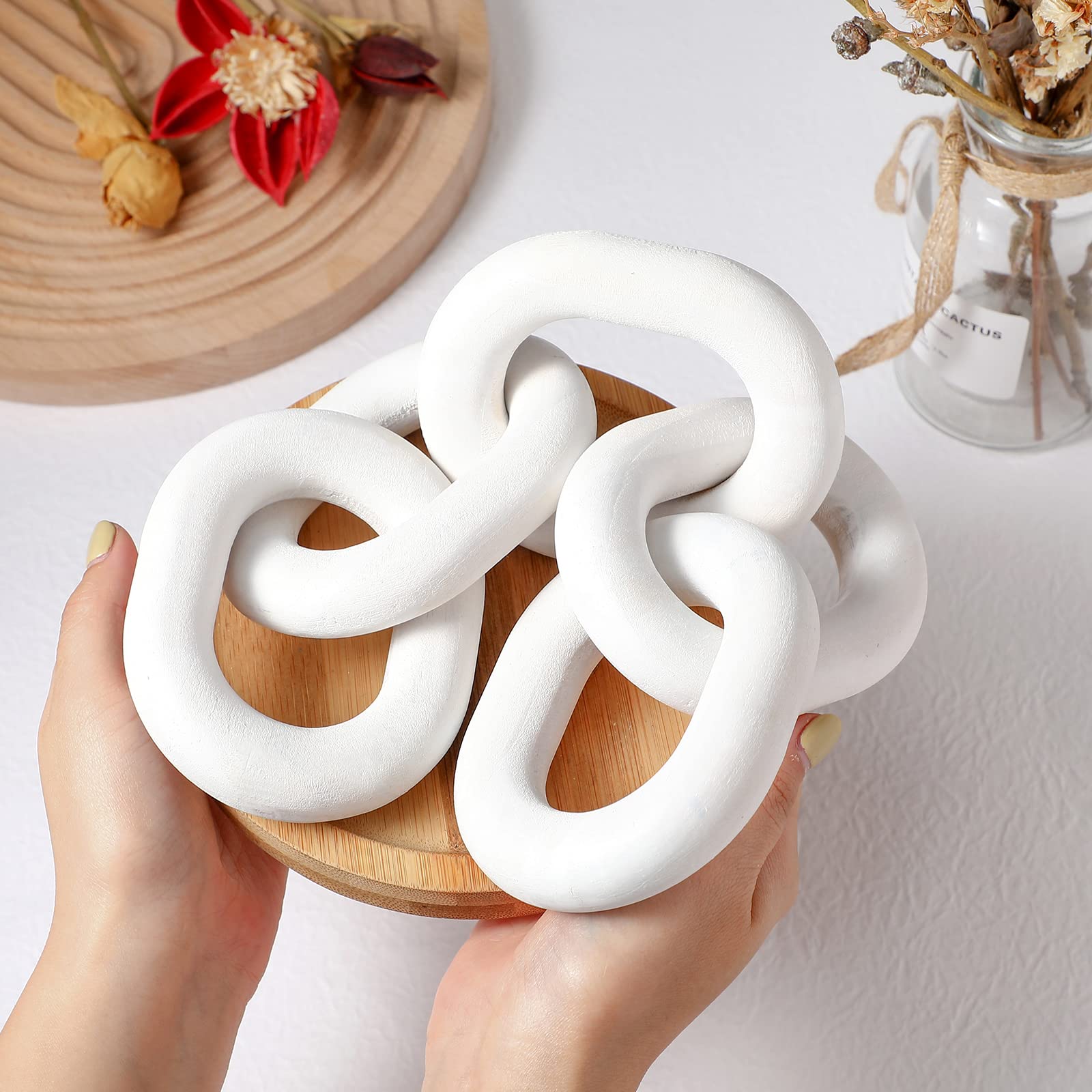 Retro and Creative: this wood chain link decor adopts 5 linked chains, each link chain has the same size and style, well printed, clean and striking, easy for you to match well with your tables, trays, books, vases or other items, making your home look more charming