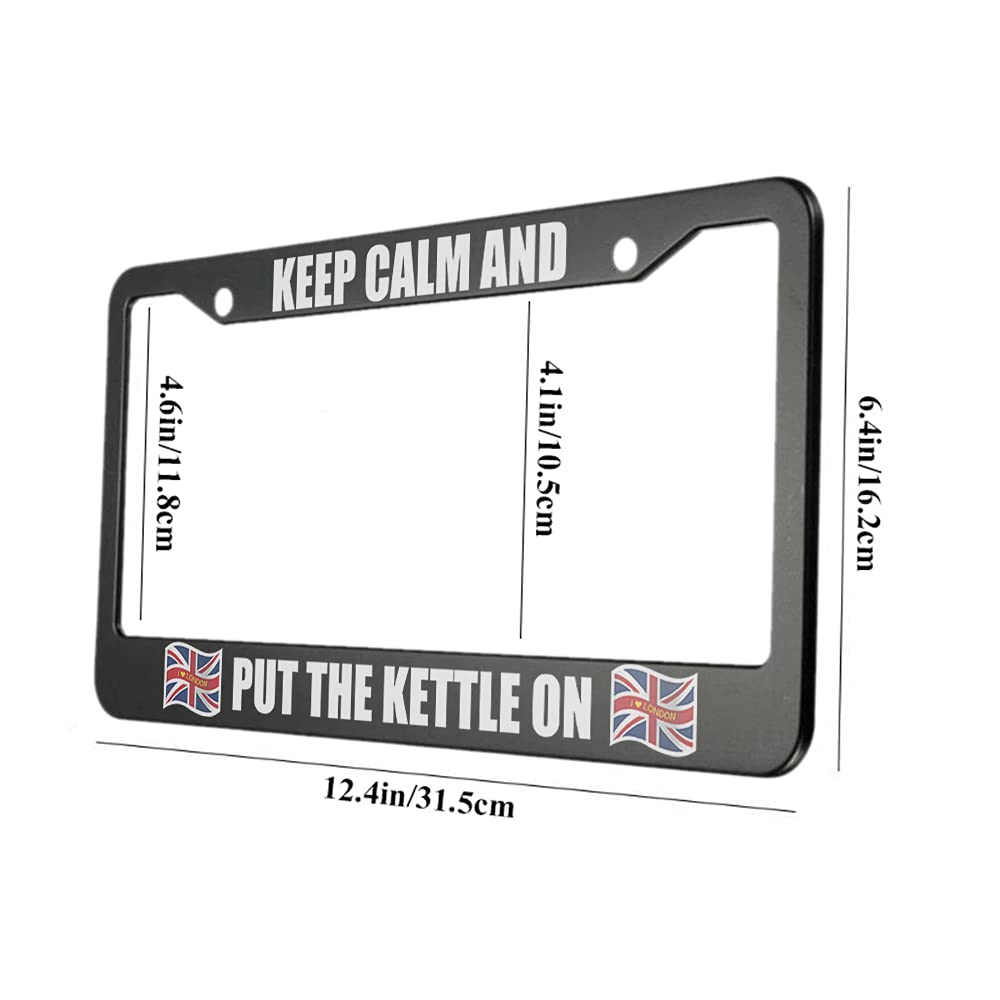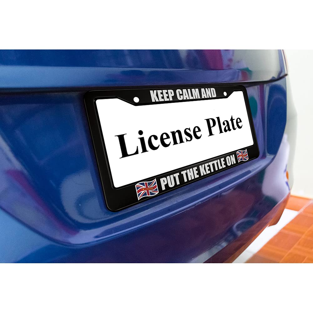 Our Keep Calm and Put the Kettle on Aluminum Alloy License Plate Frame British England Flag I Love London Applicable to US Standard Car Metal Car Tag Frame(1 PACK) We fab these License plate frames out of an outdoor durable aluminum alloy composite material, to protect the image from fading and protect the image from road debris, extending the life of the graphic Durable aluminum frame with aluminum coating. This license plate holder is the perfect accessory for your vehicle. Please check the product image for frame size. Please measure your license plate to make sure the upper or bottom lip of the frame won't cover the state name. Specifications: Frame size: 12.4" X 6.4" Frame material: thin aluminum sheet metal Package Includes: 1 x License Plate Frame Tips: Sold individually (not a pair). Get one for the front and back of your vehicle. After-sales Service: If you have any questions, please contact us through our shop. We will reply within 24 hours.
