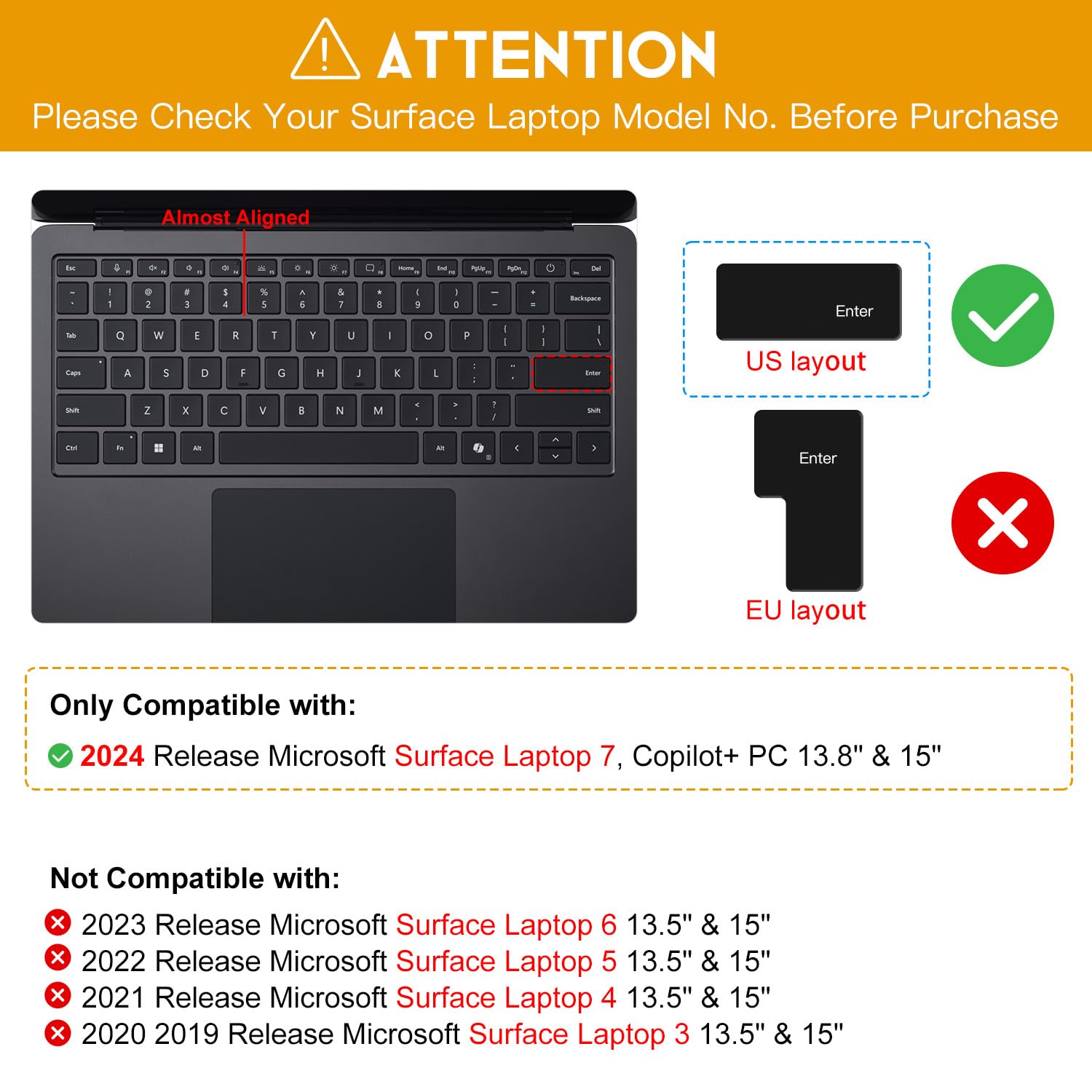 Engineered to fit precisely for the keyboard of 2024 Surface Laptop 7th Edition Copilot+ PC, CPU Snapdragon X Plus / Elite 13.8 inch & 15 inch.(US Keyboard Layout Only, the shape of "Enter" key is like the "Rectangle").