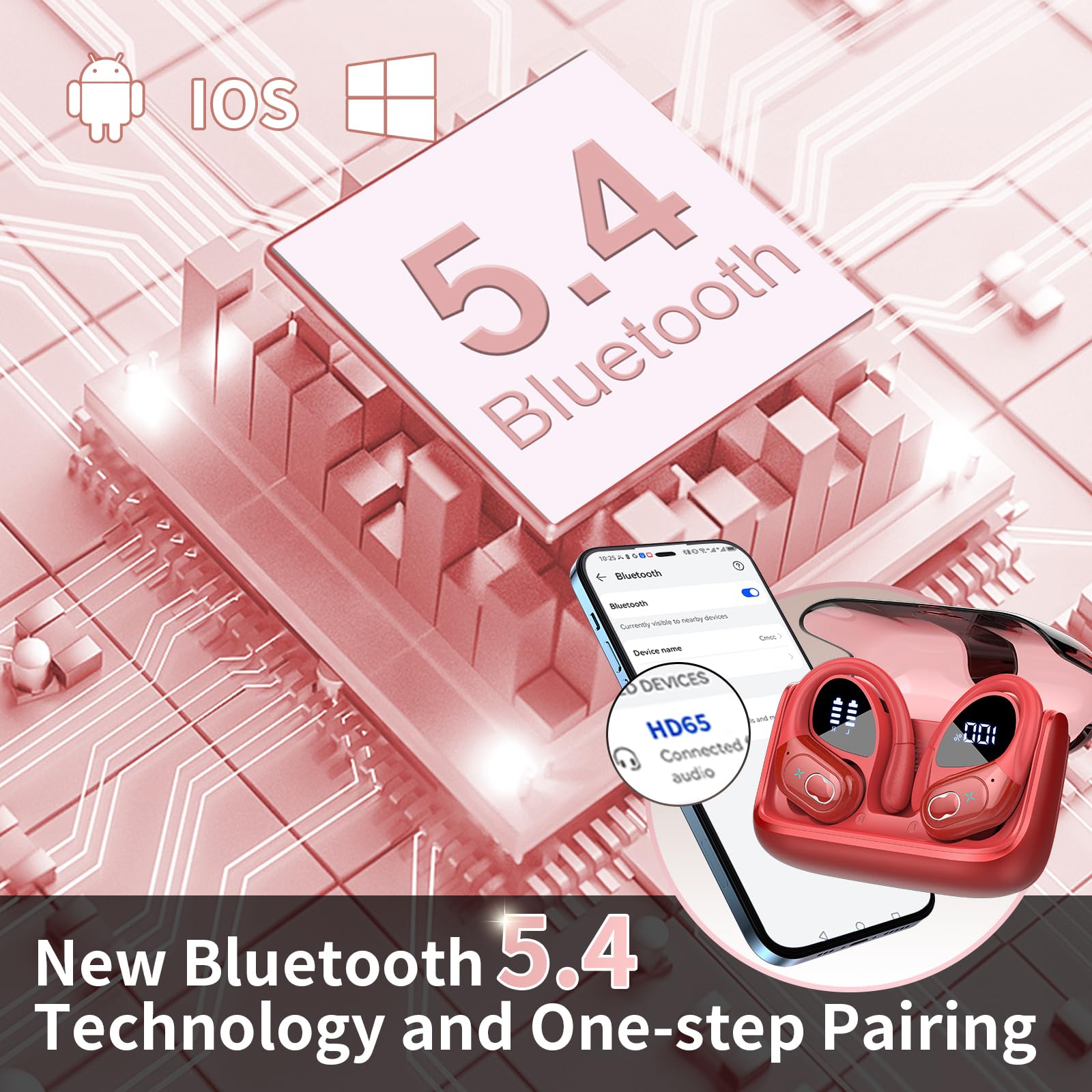 Leading Bluetooth 5.4 Technology and Easy Pairing: Features with the advanced Bluetooth 5.4 chip technology, Aptkdoe HD65 wireless headphones support HFP A2DP HSP AVRCP, which provides instant pairing and stable transmission without interruptions, with a stable connection distance of up to 33ft. The moment you open the case, the earbuds instantly and effortlessly pair with your previously connected device, sparing you from the hassle of manual pairing and long connection times.