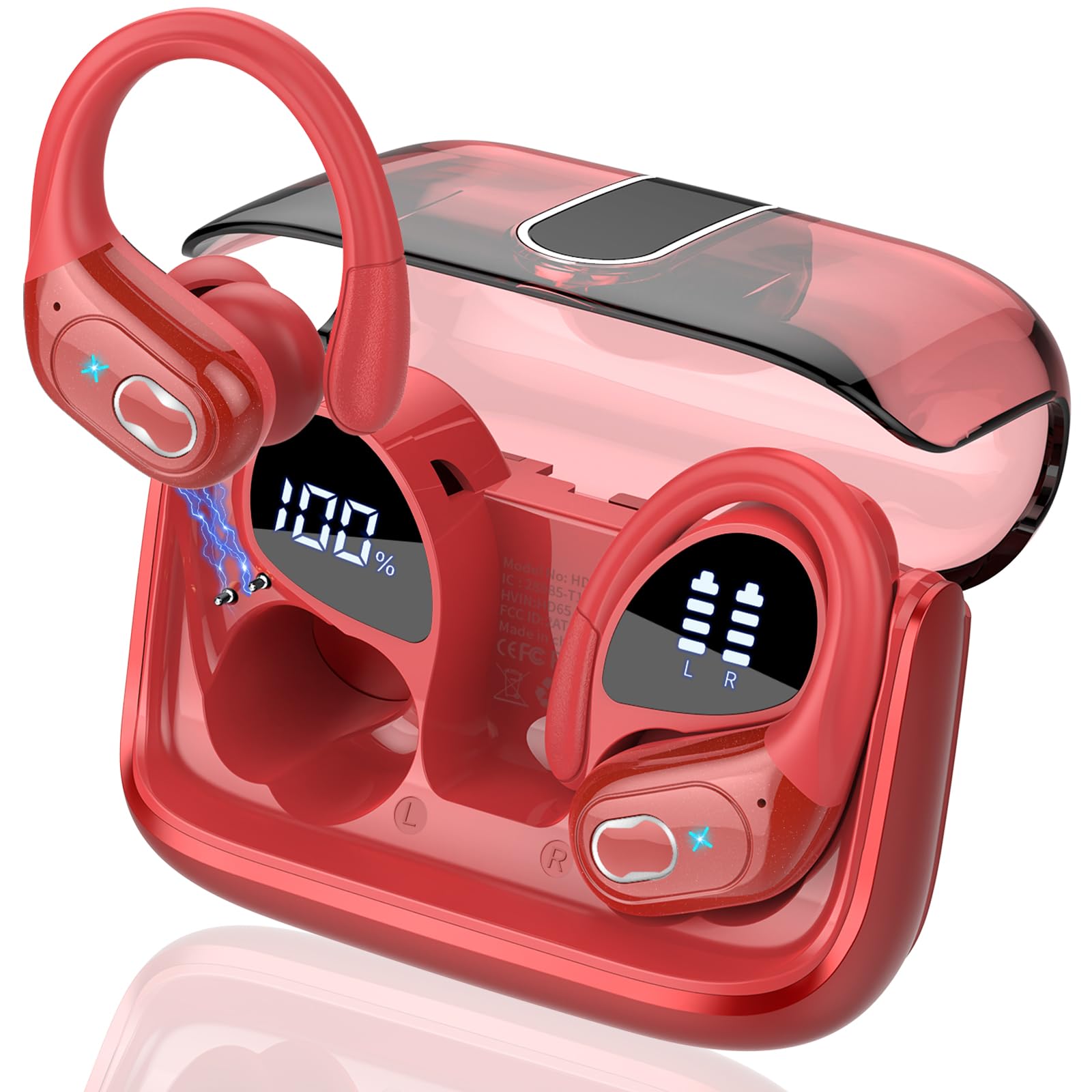 75 Hours Playtime and Dual LED Display: Running headphones provides up to 15 hours continuous using time on a single charge, portable charging case can charge the earbuds for 5-6 times, giving 75 hours of a total playtime. Whether on the road or in daily life, it will provide unparalleled convenience and smart experience. The dual LED display on earphones accurately display the remaining power of charging case and the charging progress of Wireless ear buds.