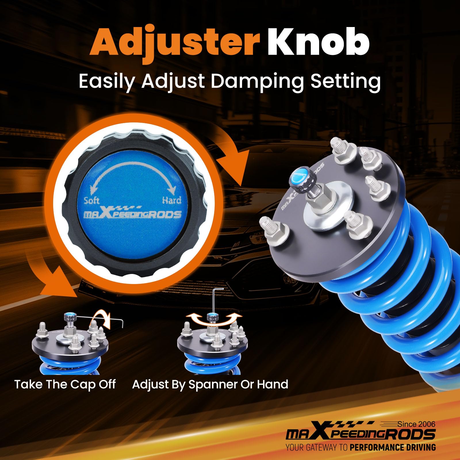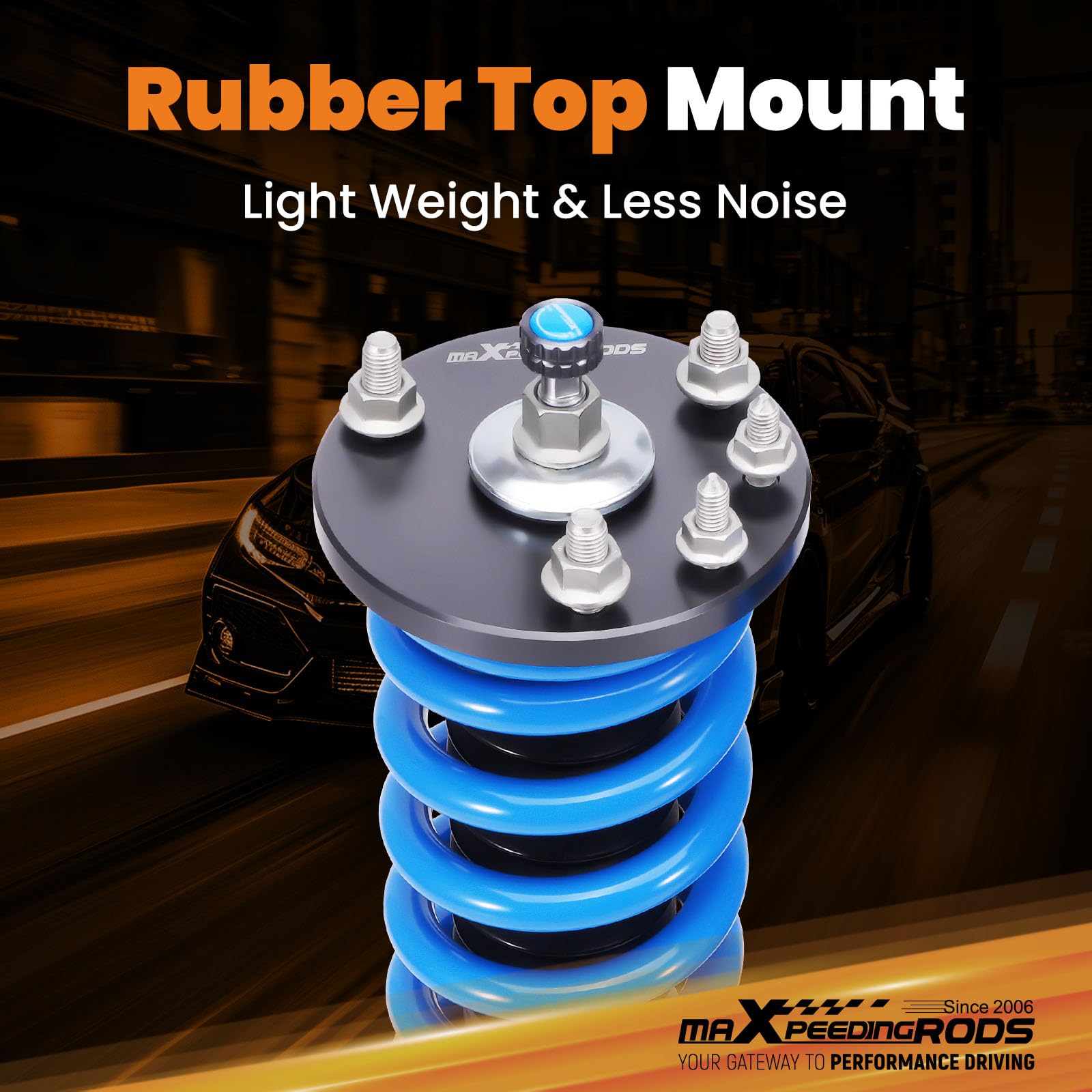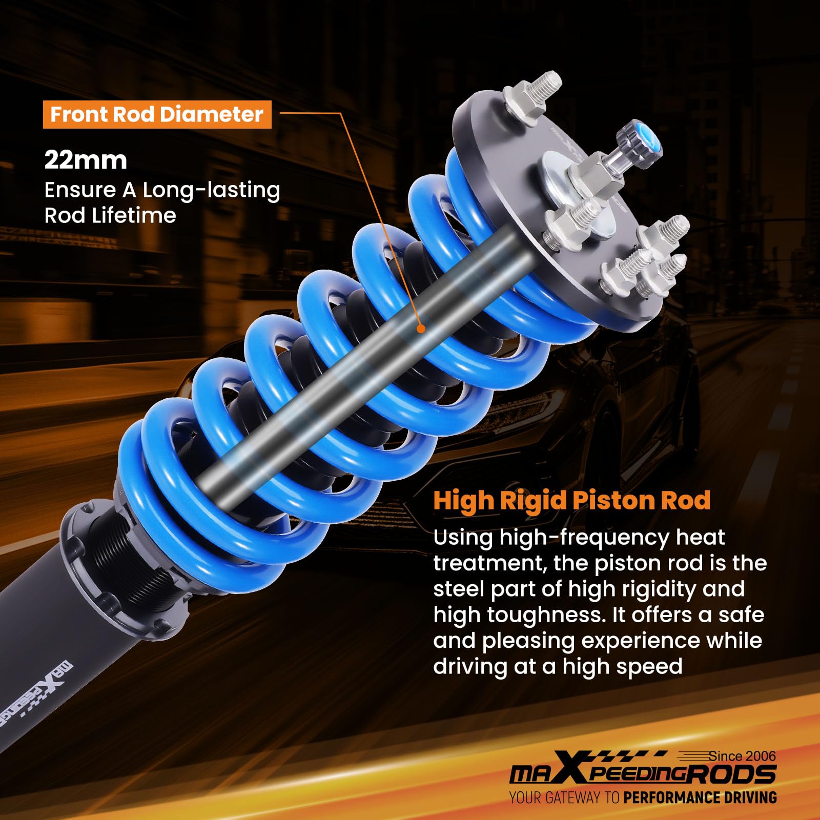 【Adjustable Height】 Thread-type ride height adjustment for 1-3 inches(does not keep the original ride height), allowing you to have a more aggressive stance. This design helps eliminate turning noise and also improves steering feel and response