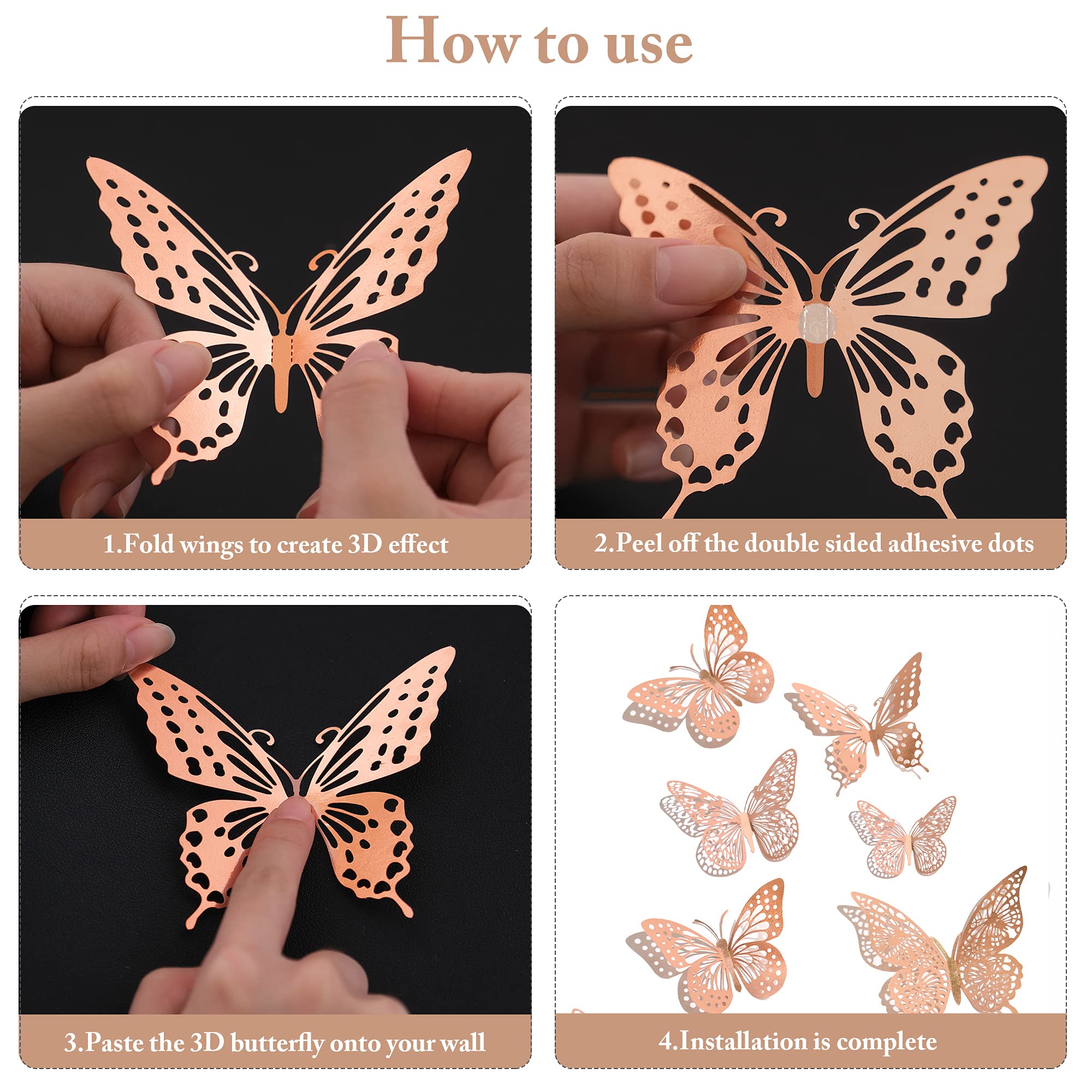 【3D Metallic Wall Stickers】The butterfly stickers are made of metallic paper, you can fold the butterfly sticker into the shape you want. After folding, 3D butterfly wall stickers will add vitality to your room.