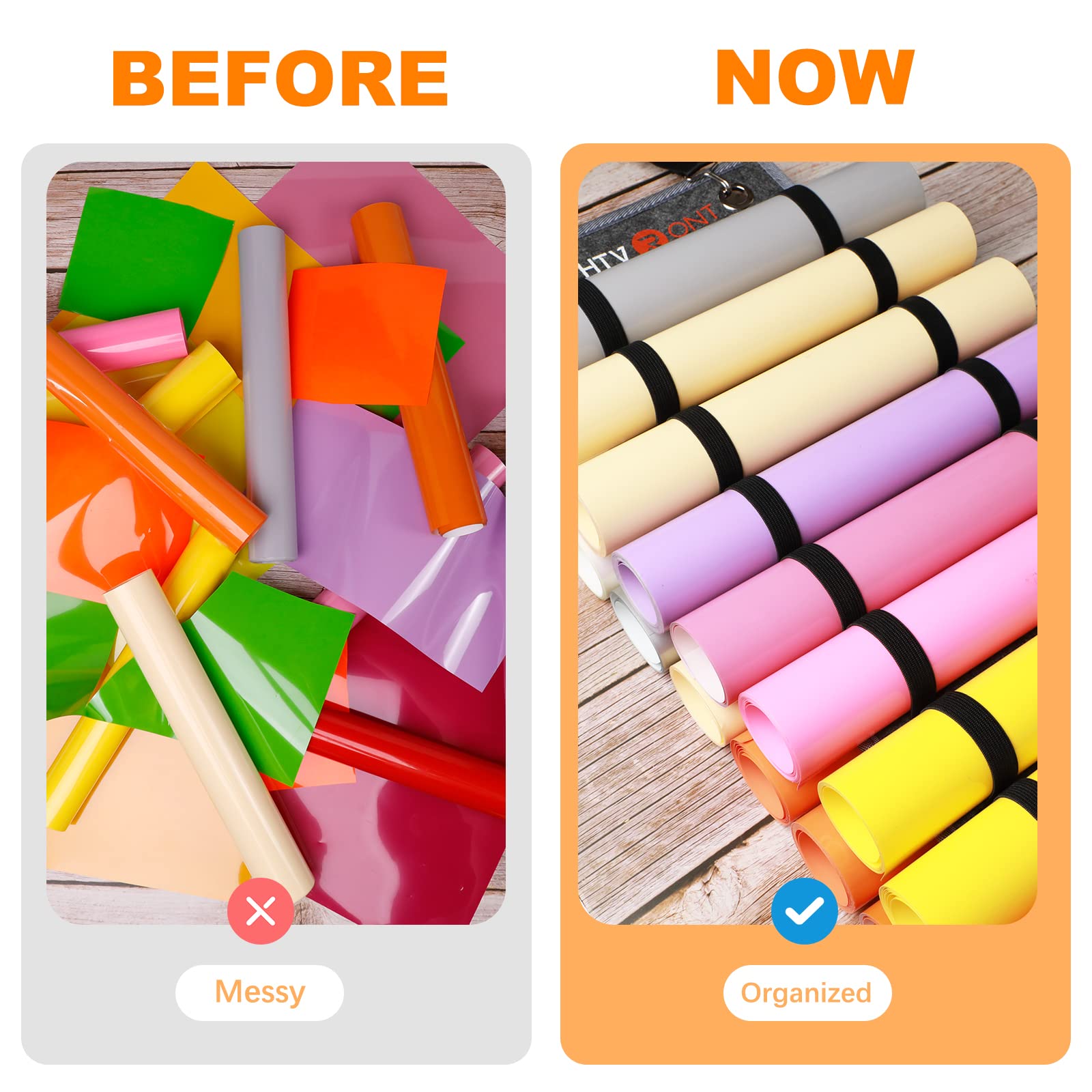PREMIUM MATERIAL: The vinyl roll storage is made of high-quality fiber felt, strong and durable, wearable, anti-tearing, and dirt-resistant. Also, this vinyl storage rack use two elastic bands to fix your vinyl rolls, so you can easily find the right color and type of vinyl roll you need without any obstructions to your vision