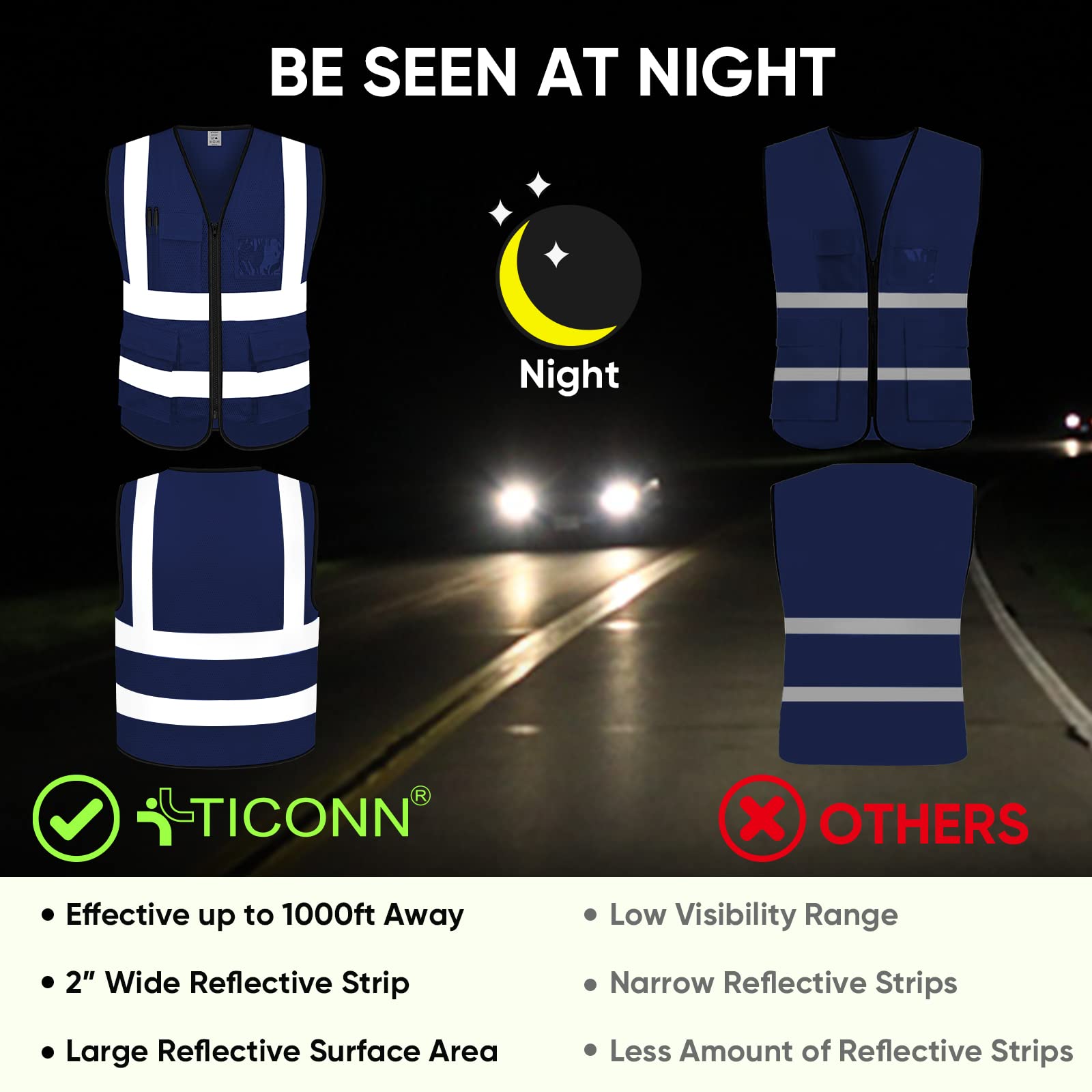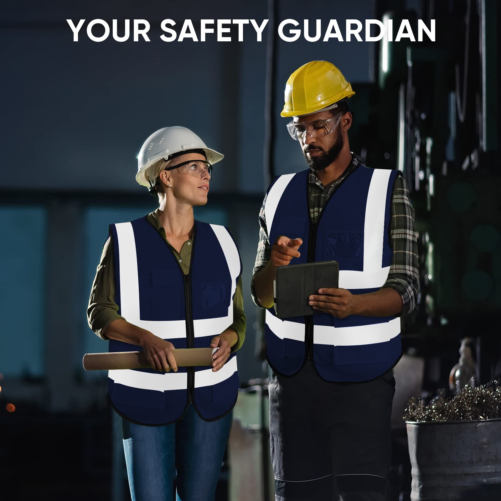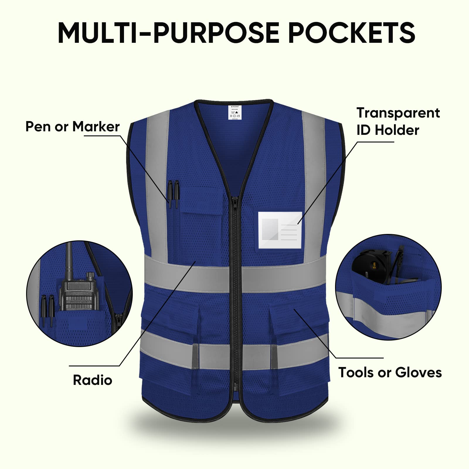 [PREMIUM MATERIAL] The reflective vest is built with premium material such as breathable yet durable polyester mesh, and smooth tough zipper, and pocket lids have velcro to secure your tools or personal belongings. Reflective strips width and surface area meet ANSI stands.