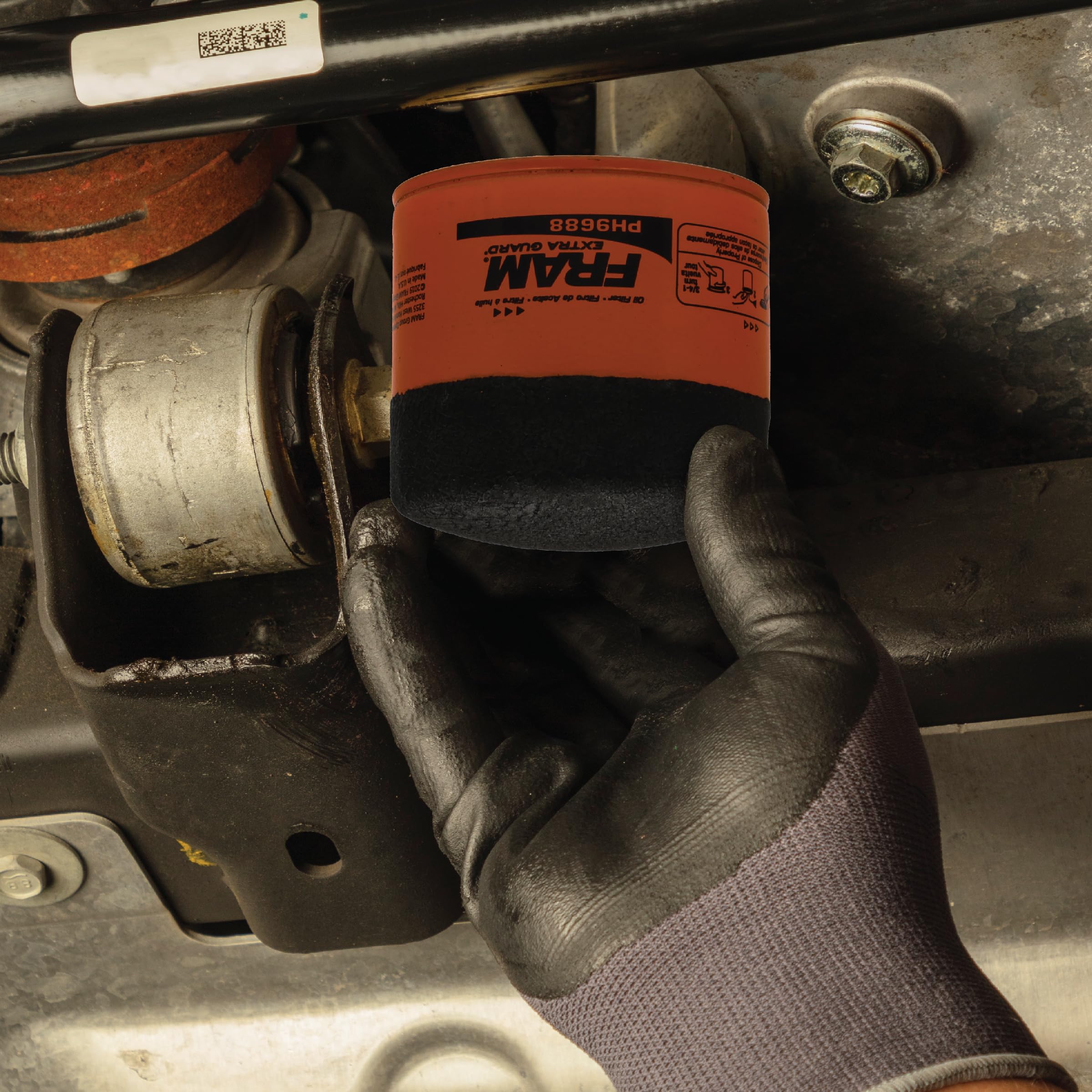Keep your engine running smoothly with the FRAM Extra Guard Oil Filter. Perfect for everyday drivers who perform frequent maintenance on their vehicles, this automotive replacement oil filter has a proven protection for up to 10,000 miles and is engineered for use with conventional or synthetic motor oil. Extra Guard filters use a special blend of cellulose and glass to create a proprietary filter media that provides advanced engine protection for your vehicle. It's built to balance 95% dirt-trapping efficiency with dirt-holding capacity, capturing nearly all of the dirt particles that can cause harmful engine wear. Engineered with a silicone non-drain back valve, this engine oil filter delivers superior start-up engine protection with up to 3X the hot oil resistance. The SureGrip feature provides a nonslip surface for easier installation and removal of the oil filter. Extra Guard meets all manufacturer’s recommended change intervals.